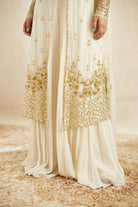 Featuring an Off White Net Front Open Jacket & Sharara Set in Net/Georgette.