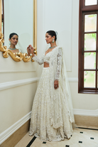 Off White Net Lehenga Choli And Dupatta Embroidered In A Floral Pattern With Tonal Sequins, Beadwork And Crystals.