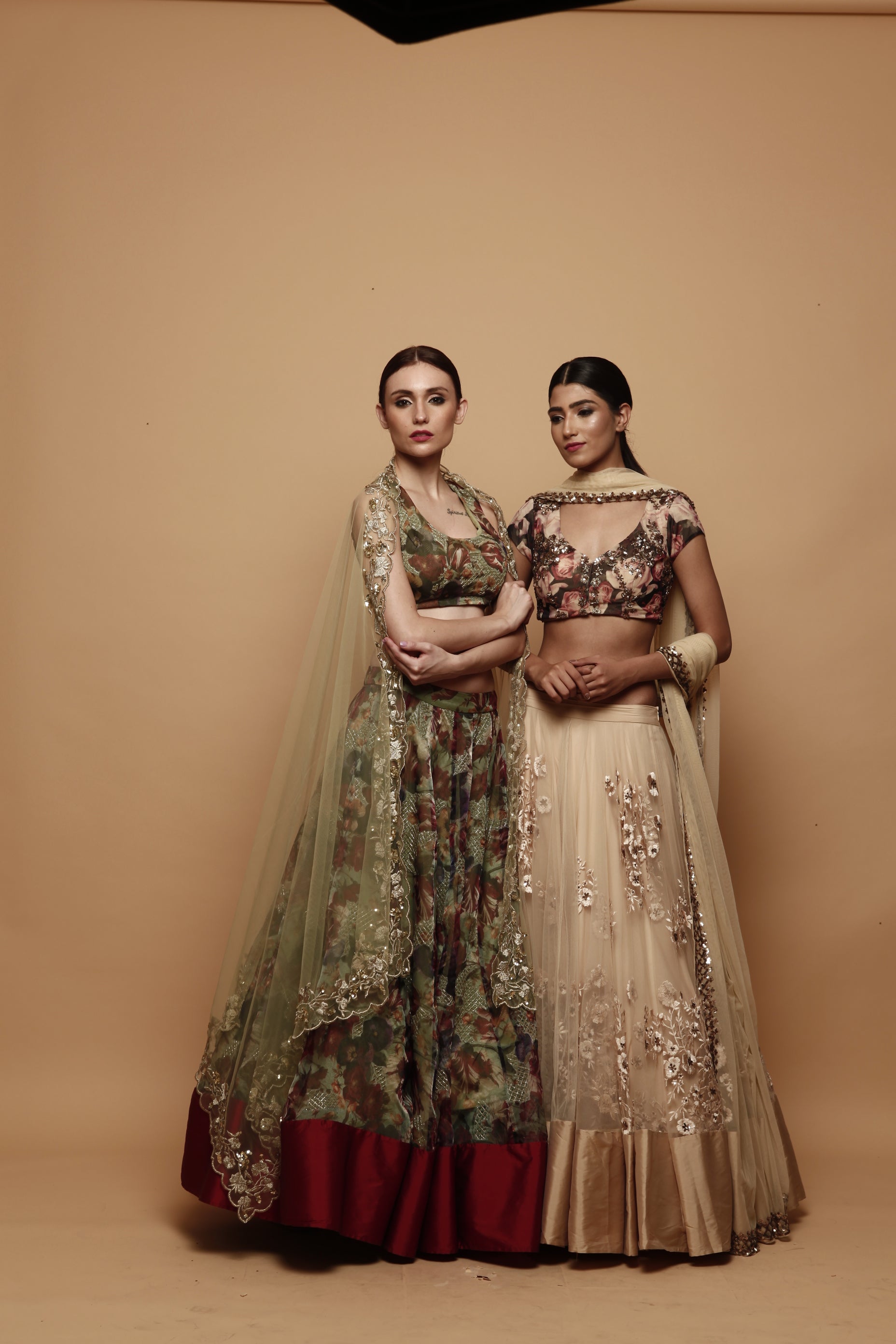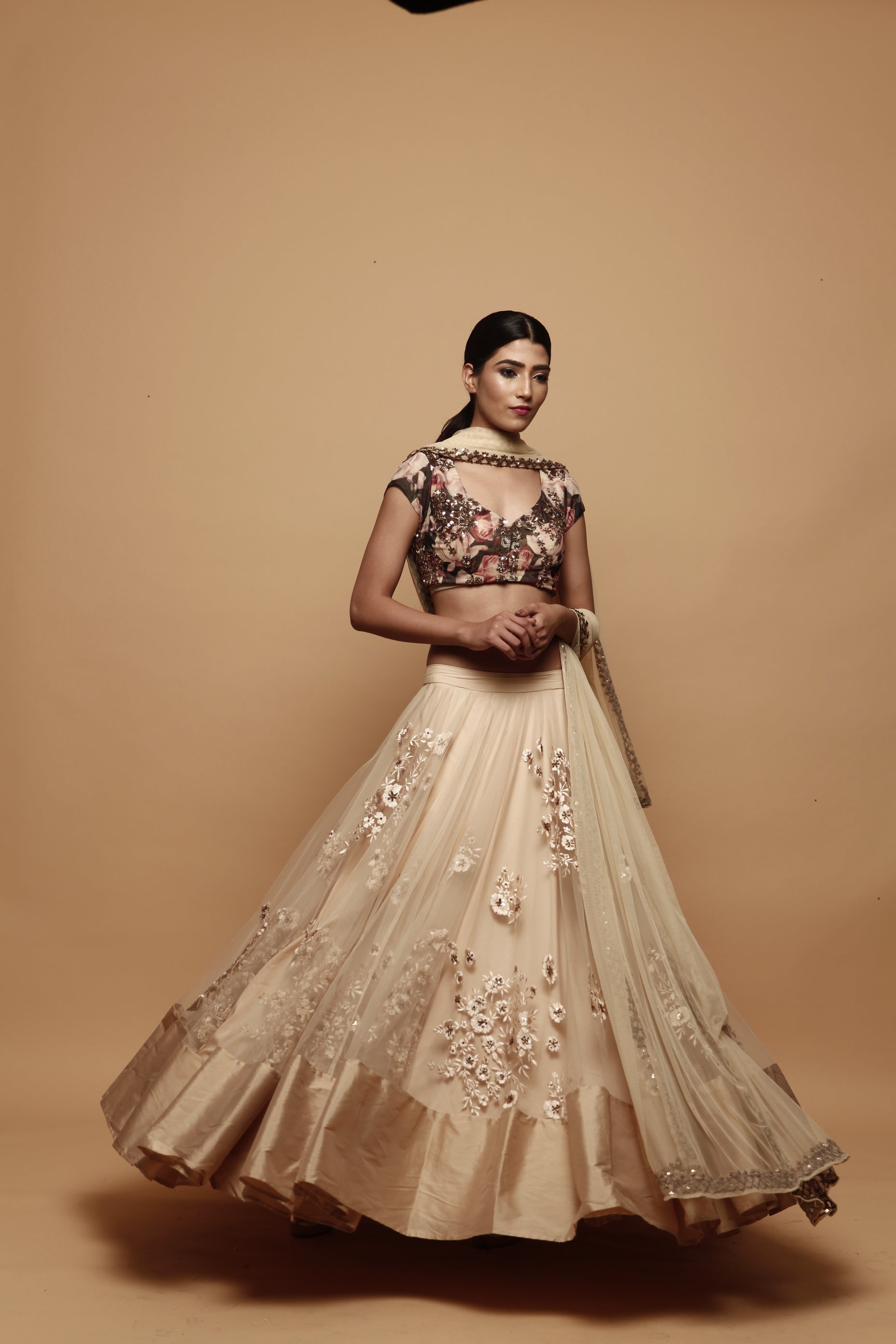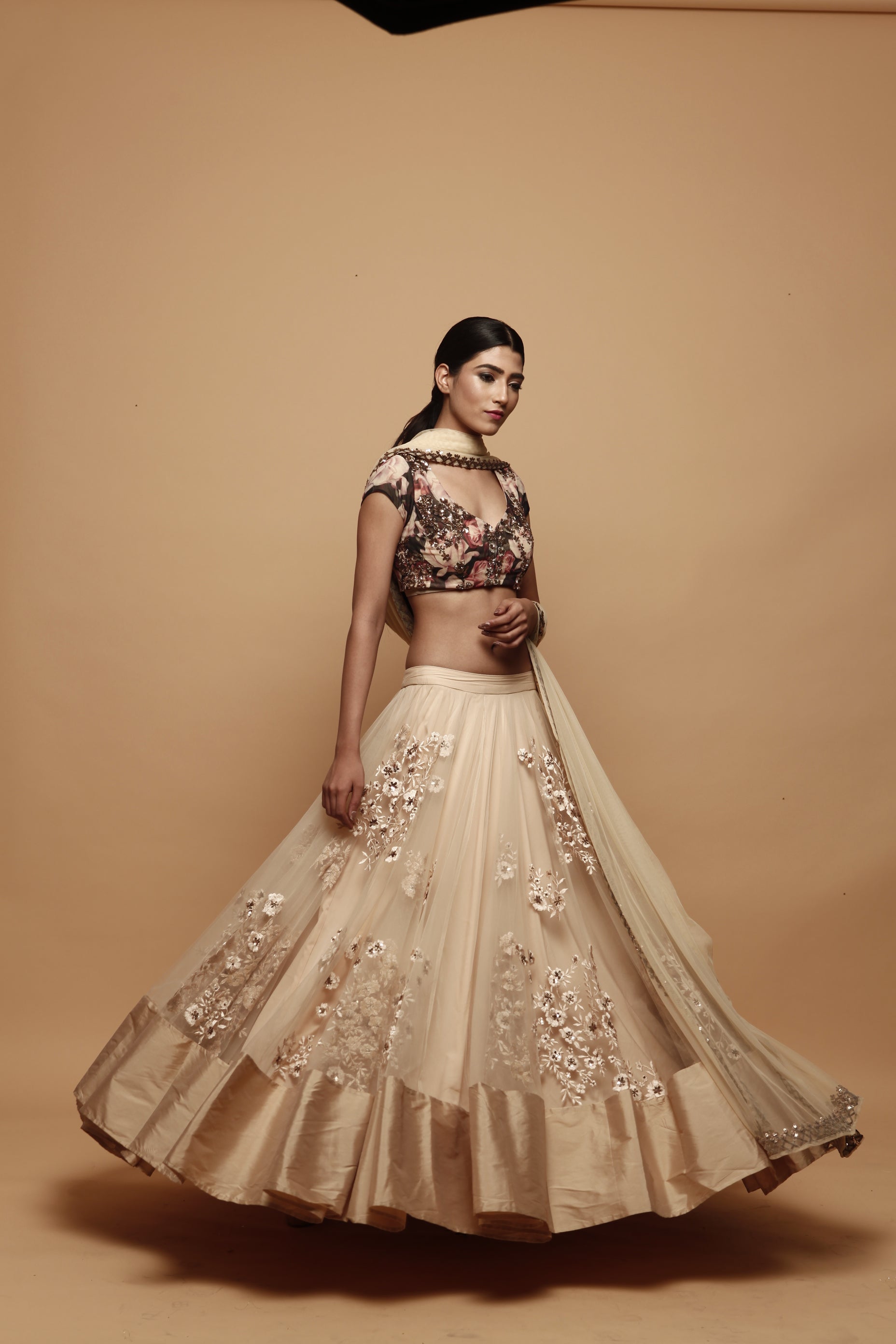 Featuring a OFF WHITE THREAD LEHENGA WITH FLORAL PRINT CHOLI IN NET.