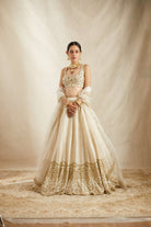 Featuring a Off White With Gold Work Lehenga Set in Raw Silk.
