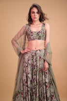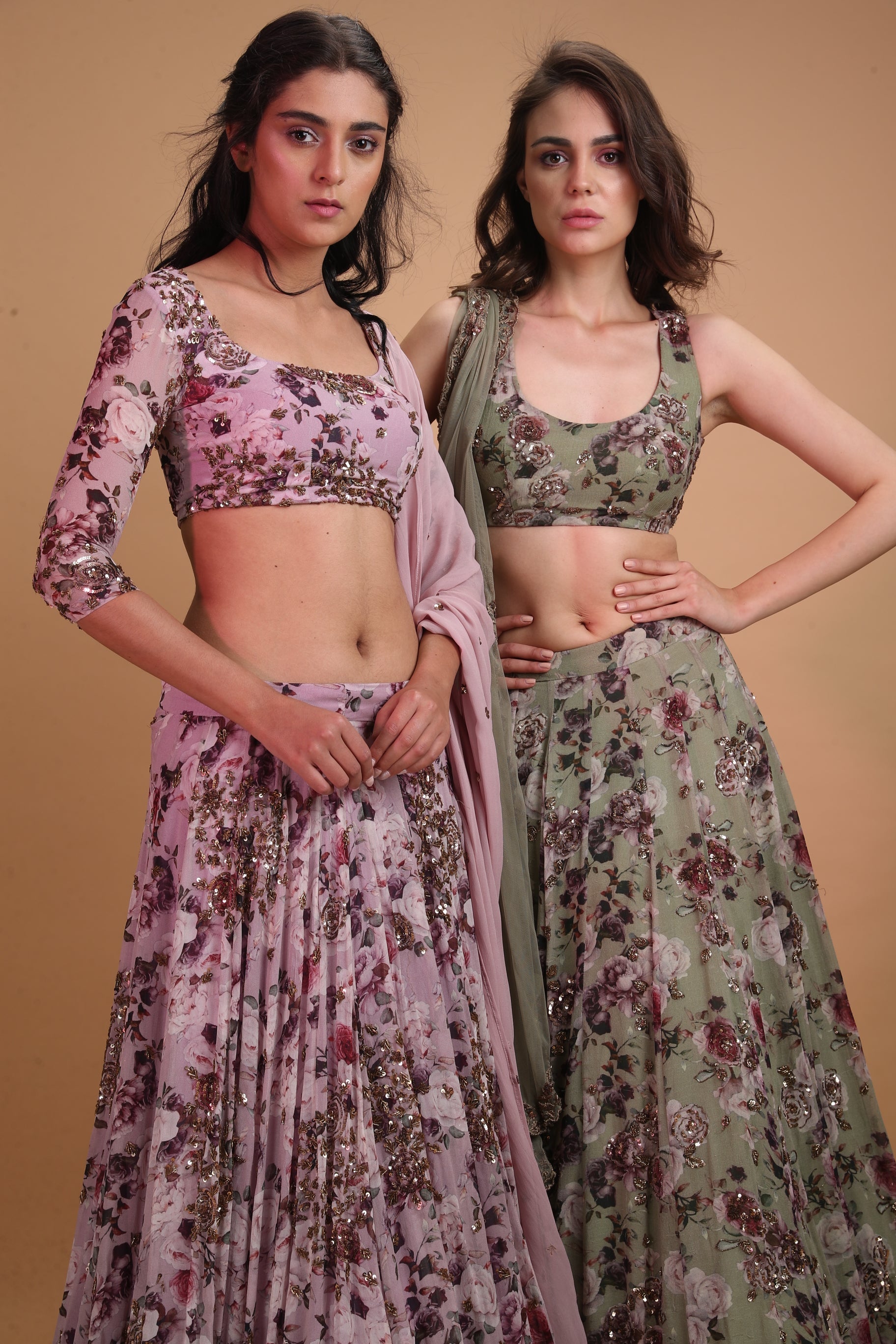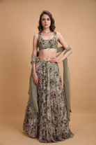 Featuring a OLIVE PRINTED FLORAL LEHENGA SET IN GEORJETTE.