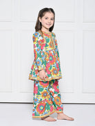Orange Poppy - A Bright Orange Floral Print Cotton Suit for Girls