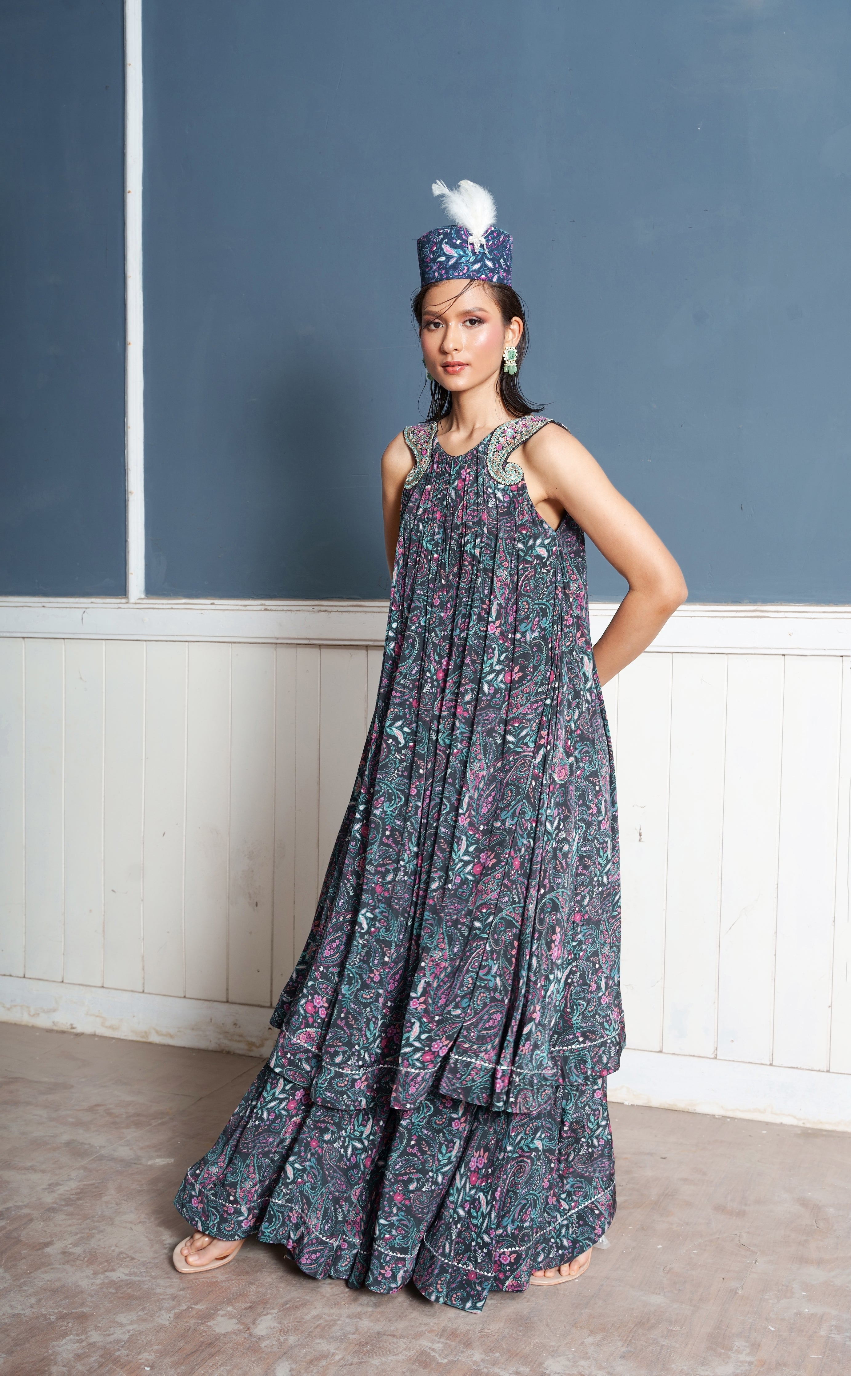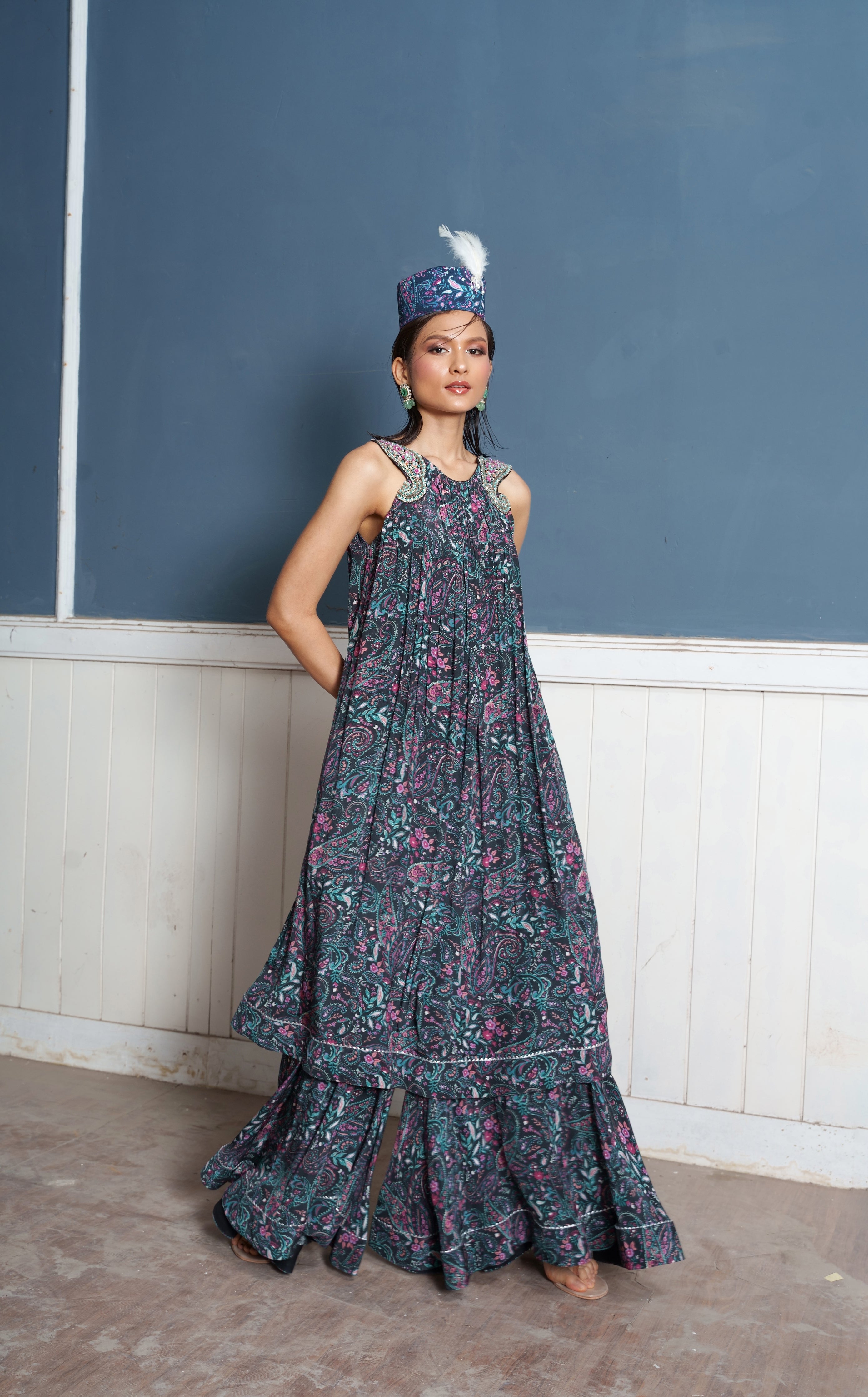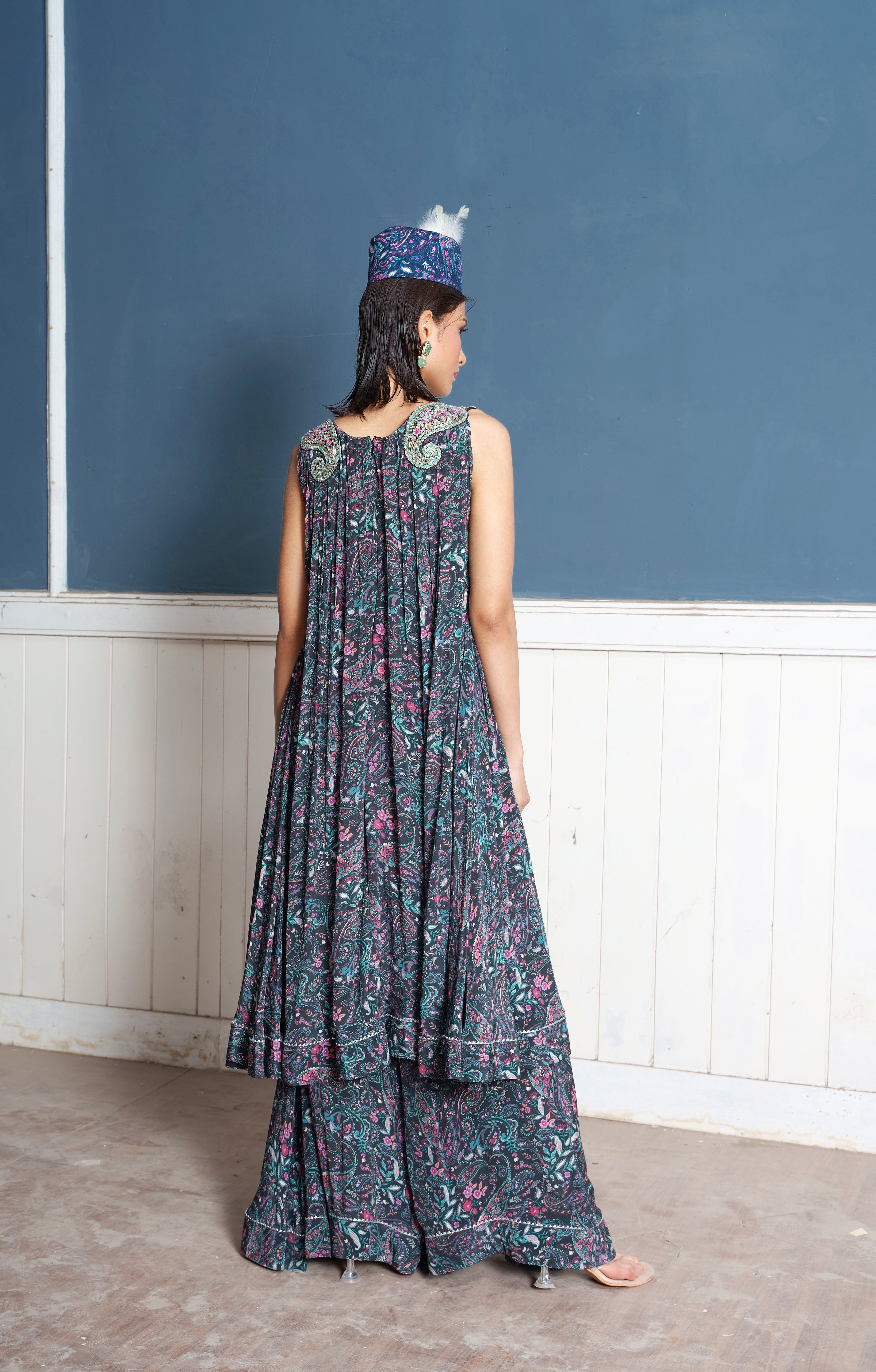 Paisley Embroidered Midnight Printed Palazzo Suit Dress