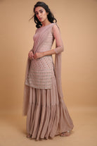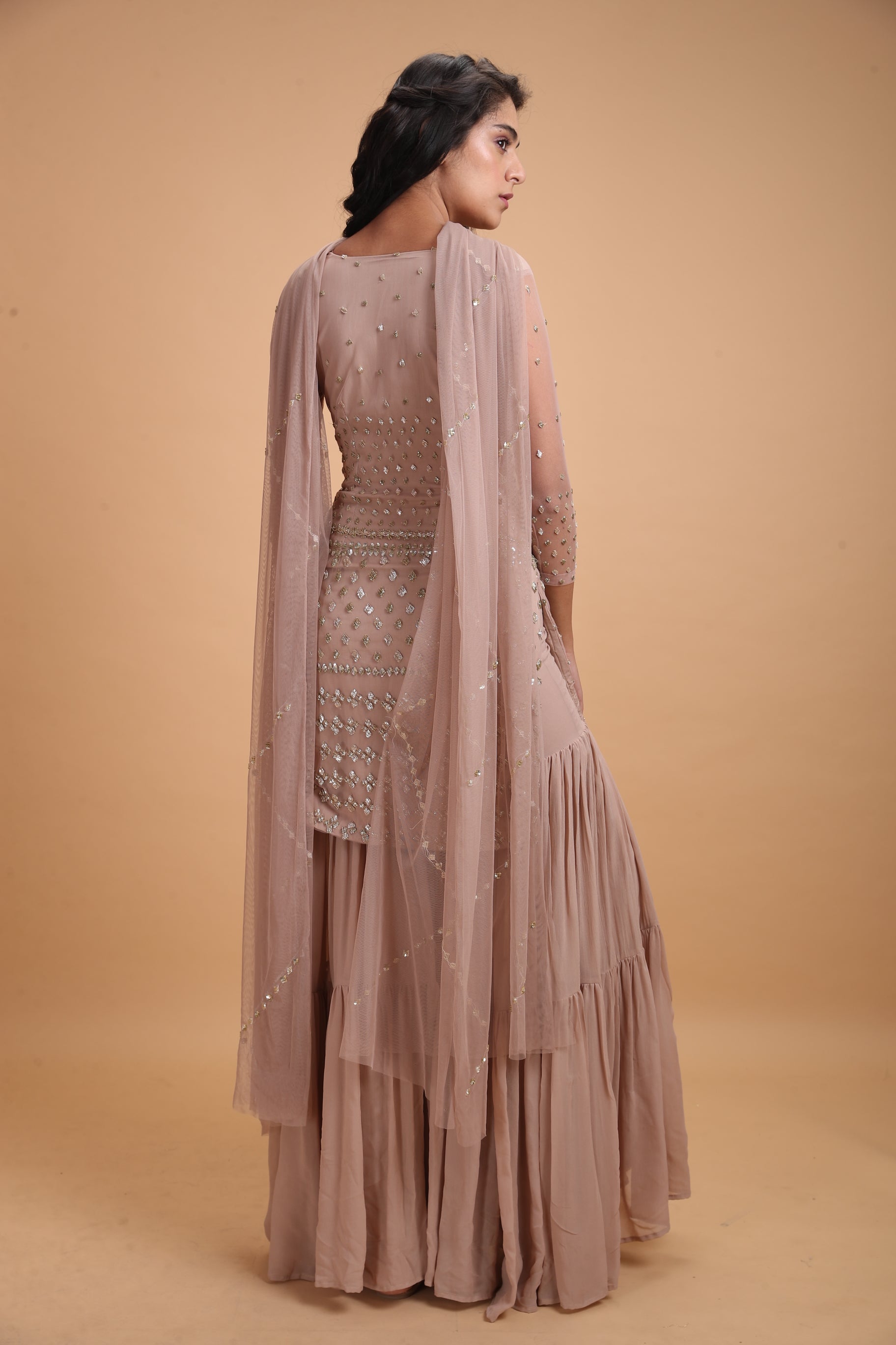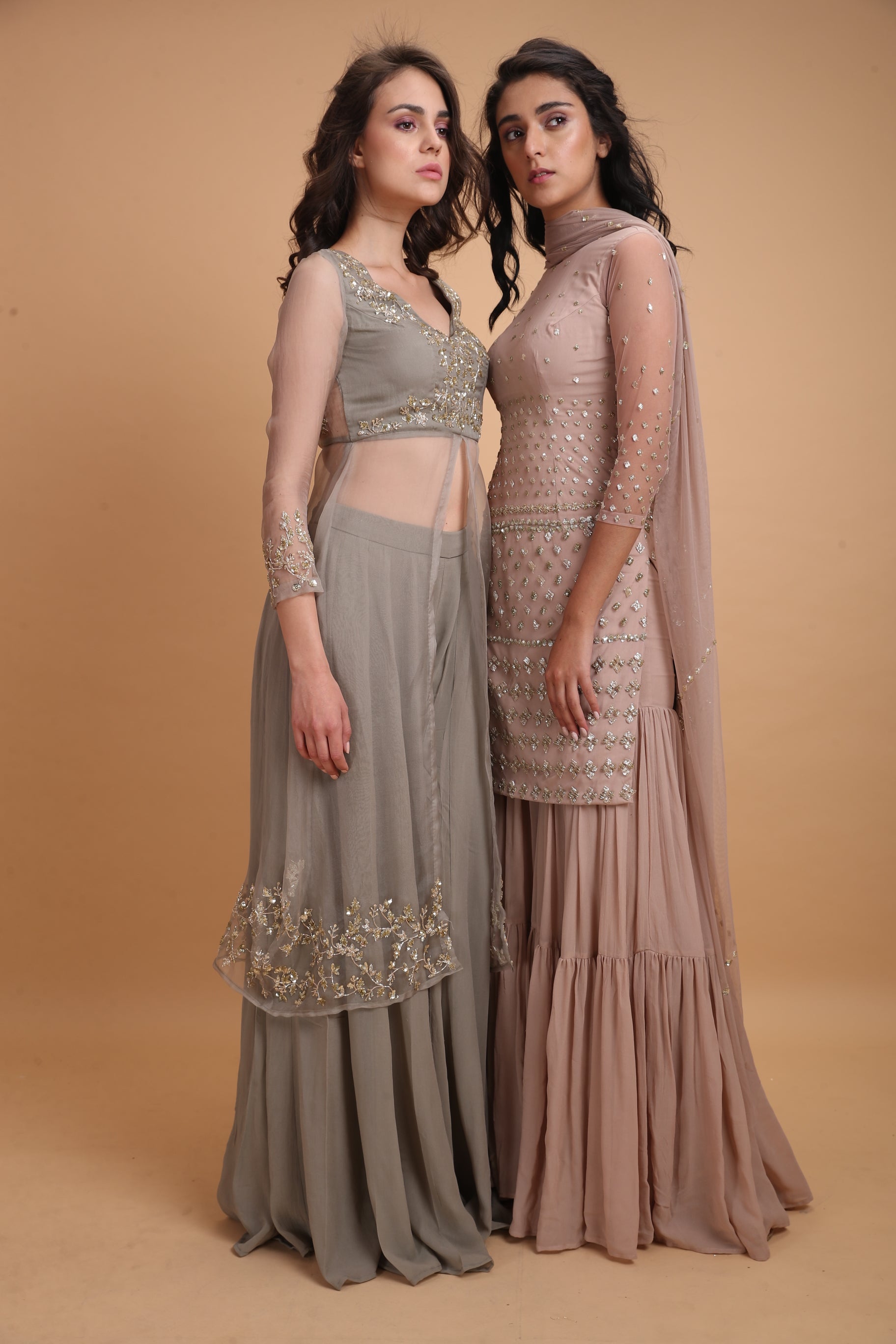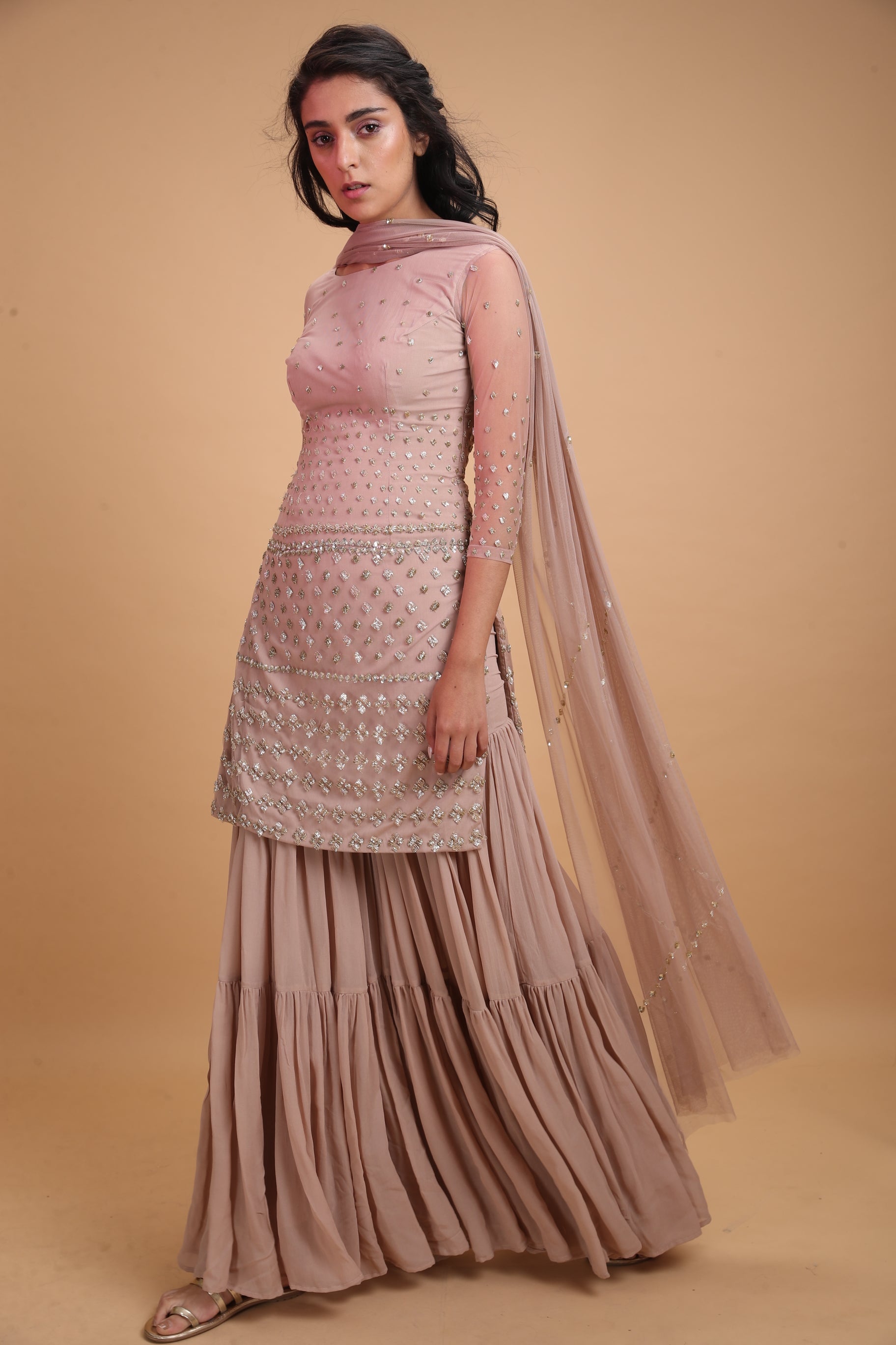 Featuring a PALE PINK NET KURTI WITH SHARARA SET IN NET.