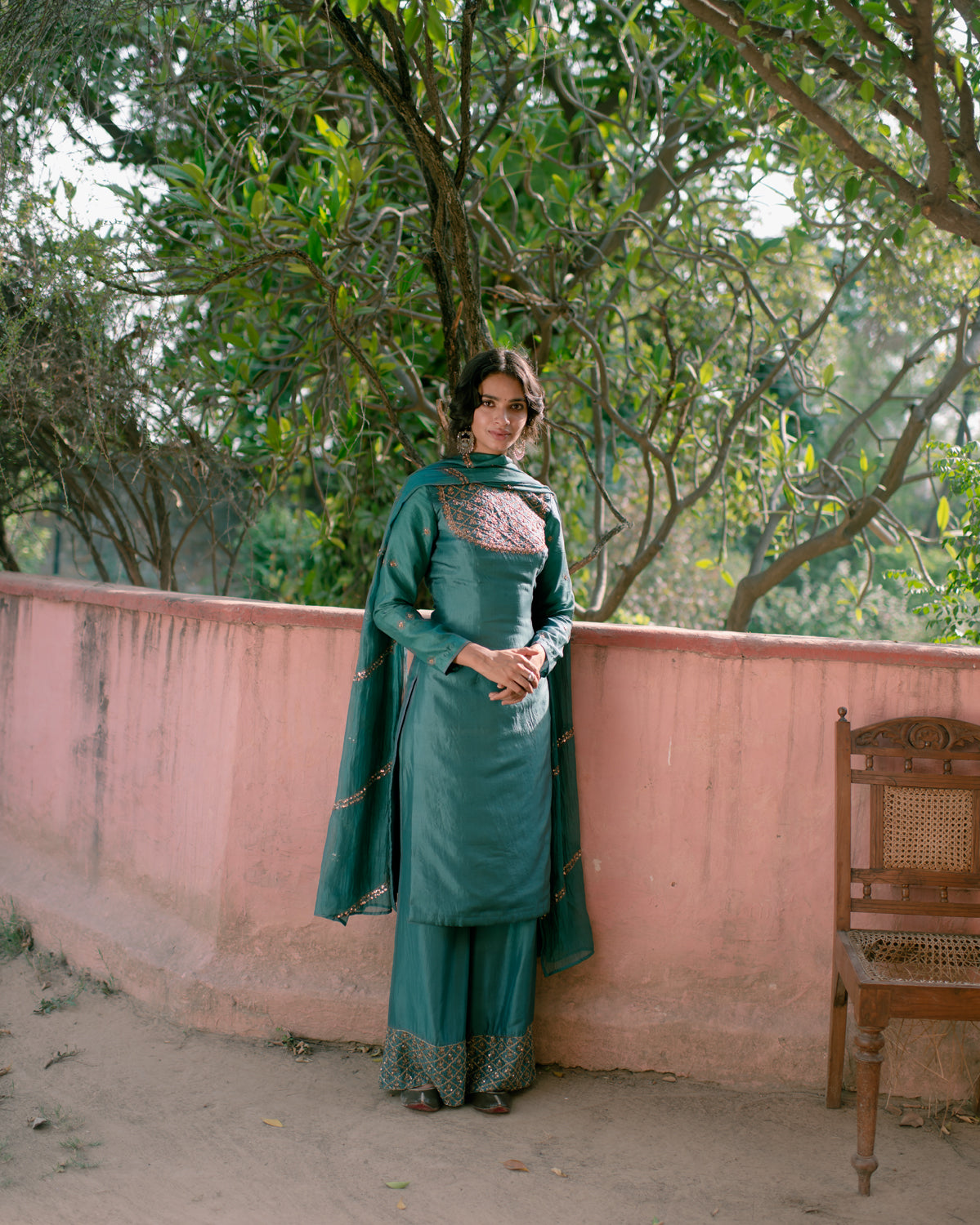Featuring a PASTEL GREEN KURTI AND PANTS IN SILK.
