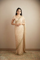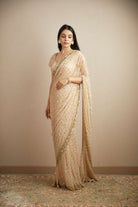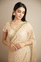 Featuring a Peach Pink Heavy Shimmer Work Saree Set in Net.