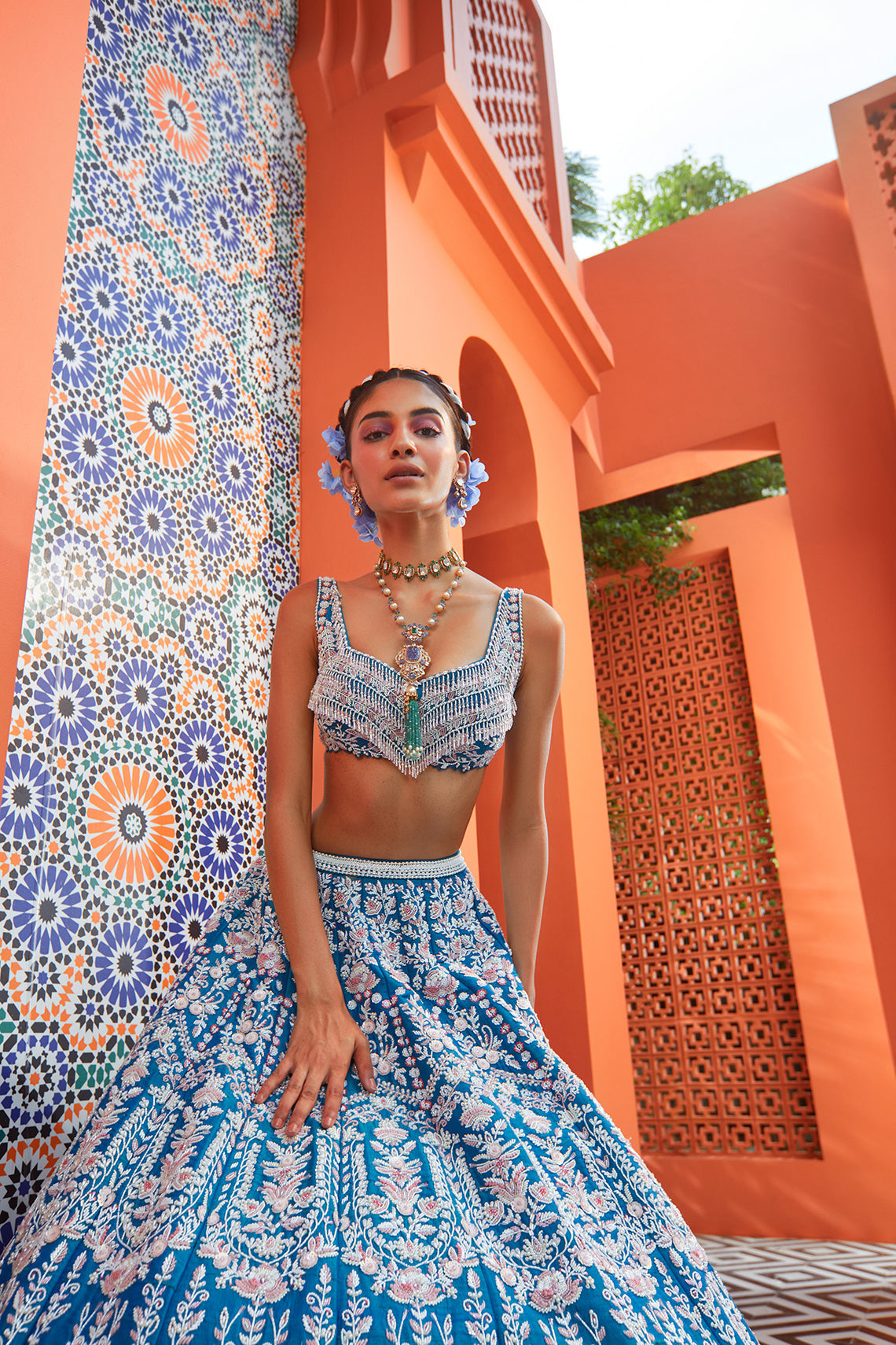 Peony Blue Silk Lehenga Set