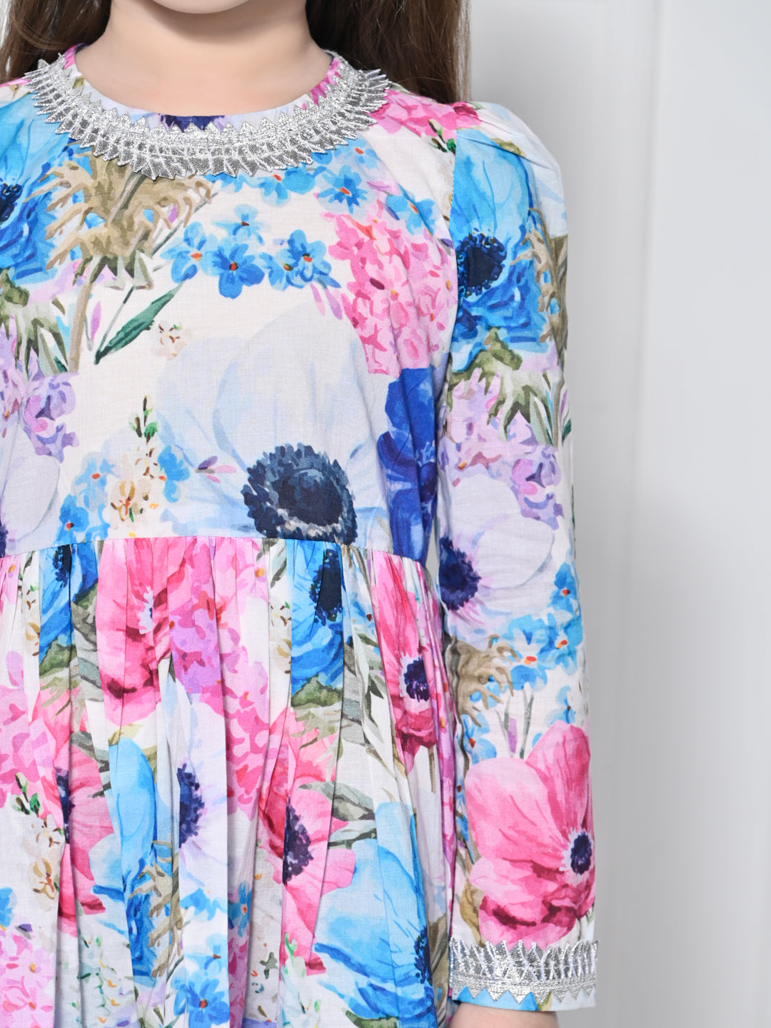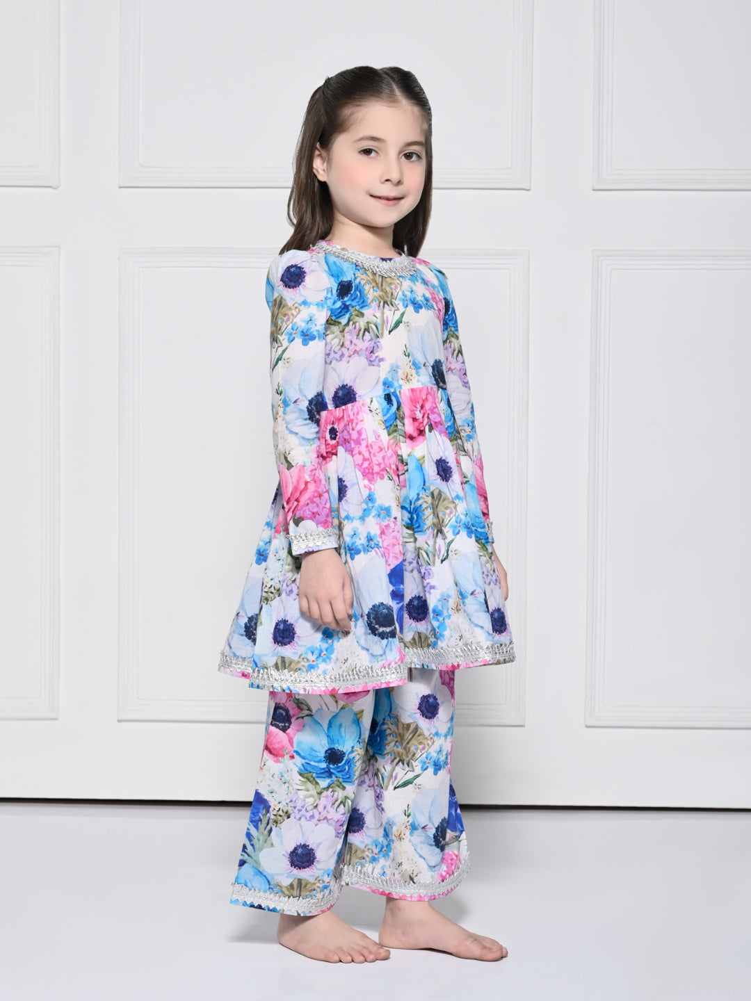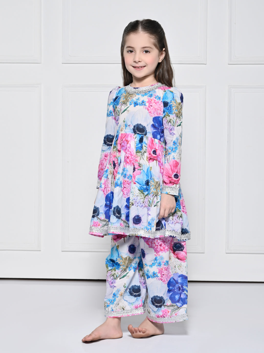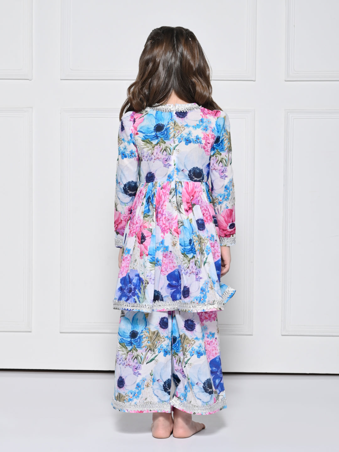 Pink & Blue floral Cotton Suit for Girls