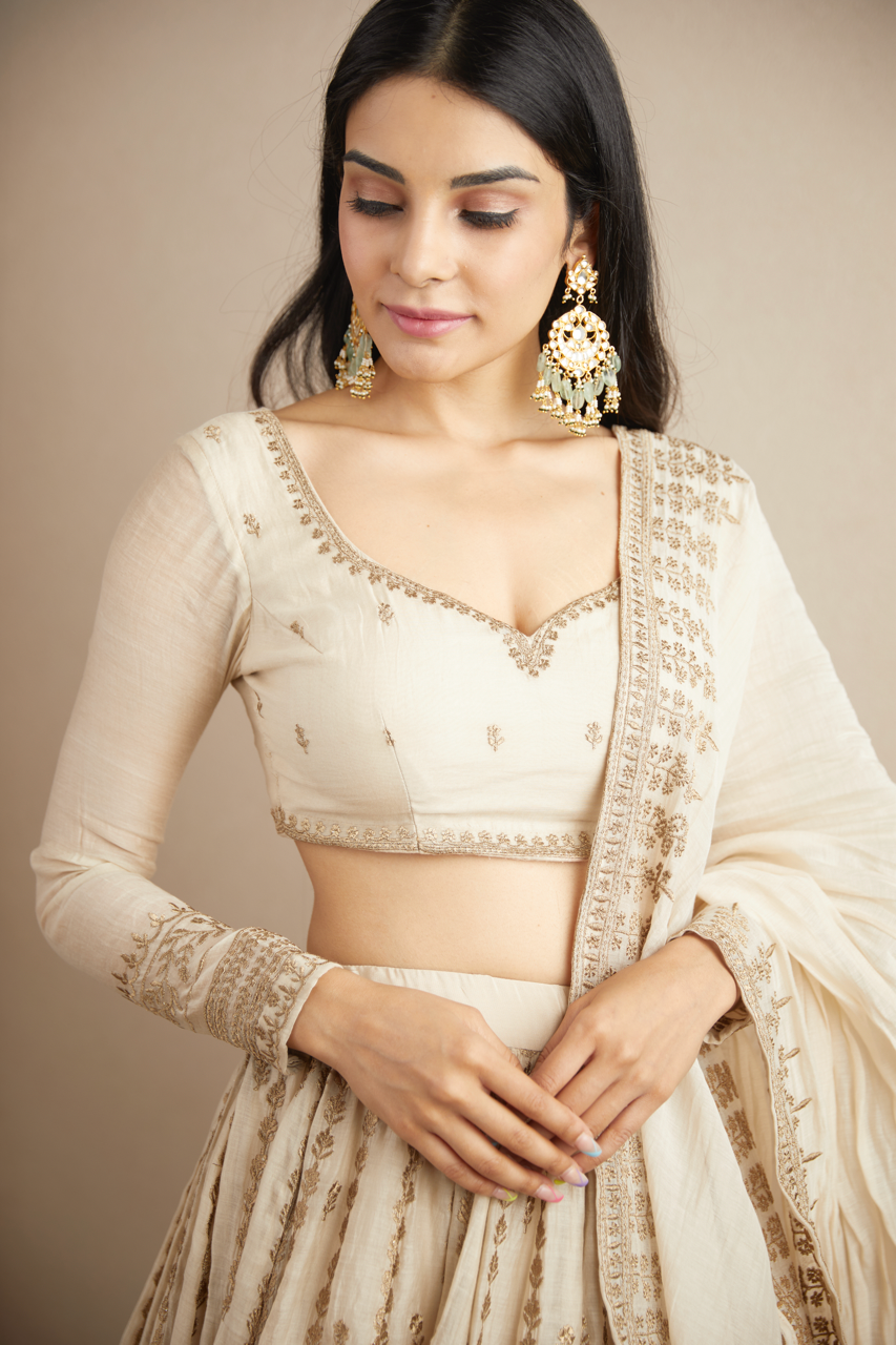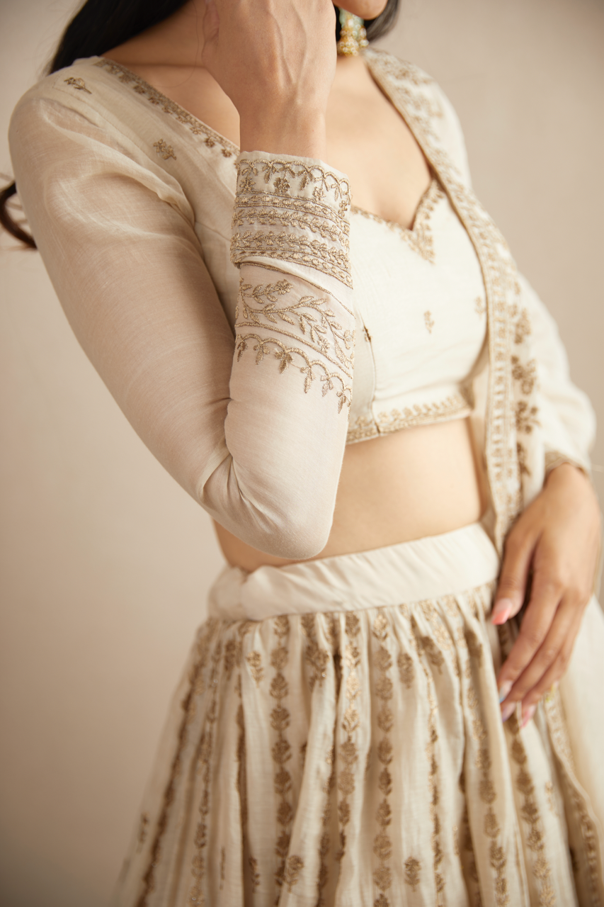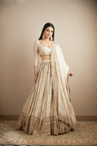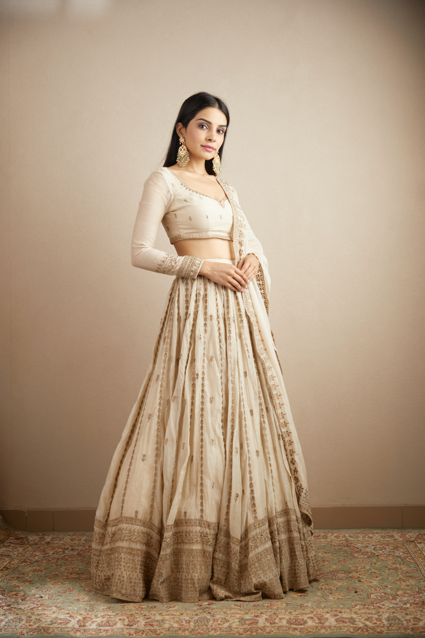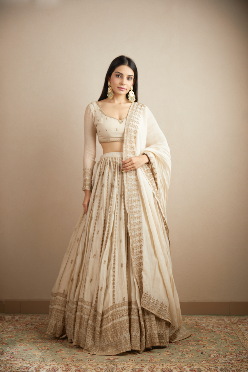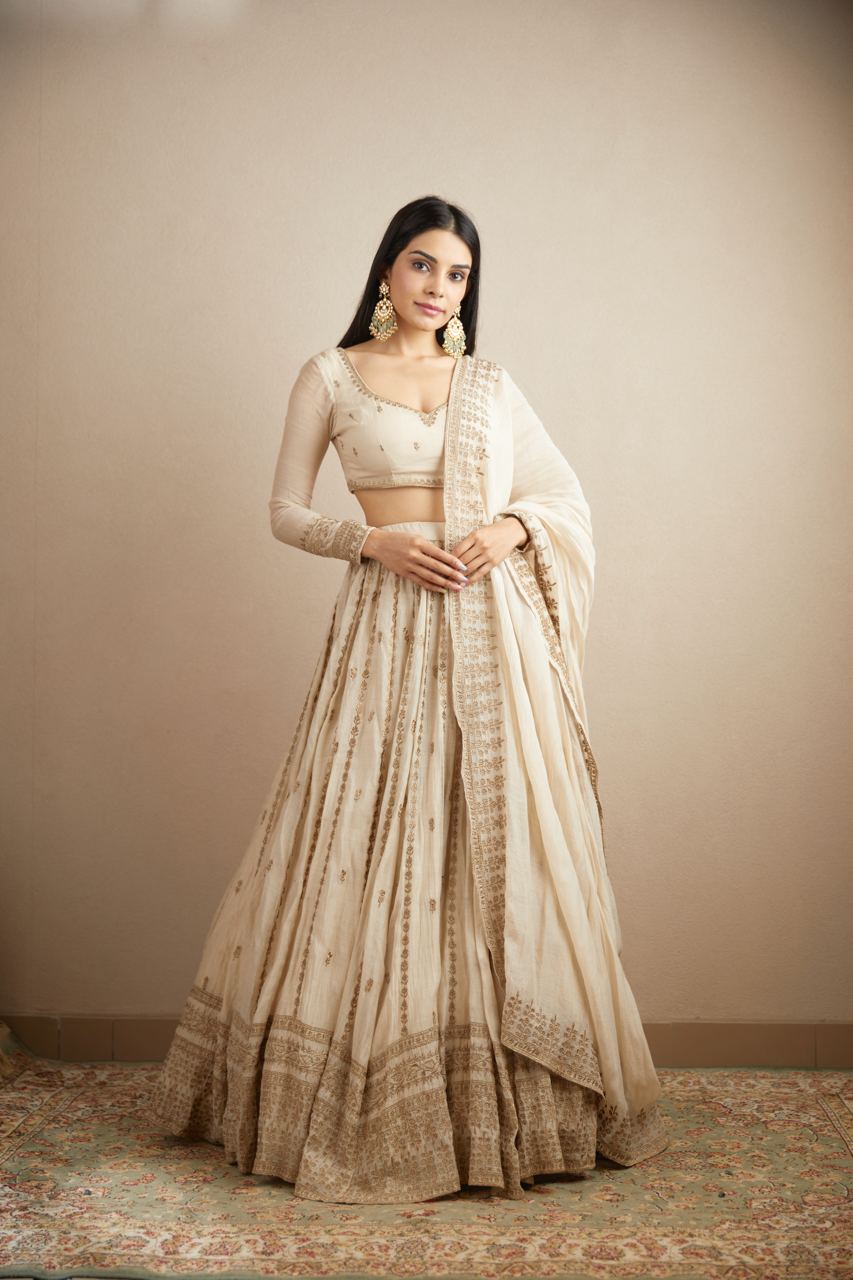 Featuring a Pink Chanderi silk line work Lehenga set.
