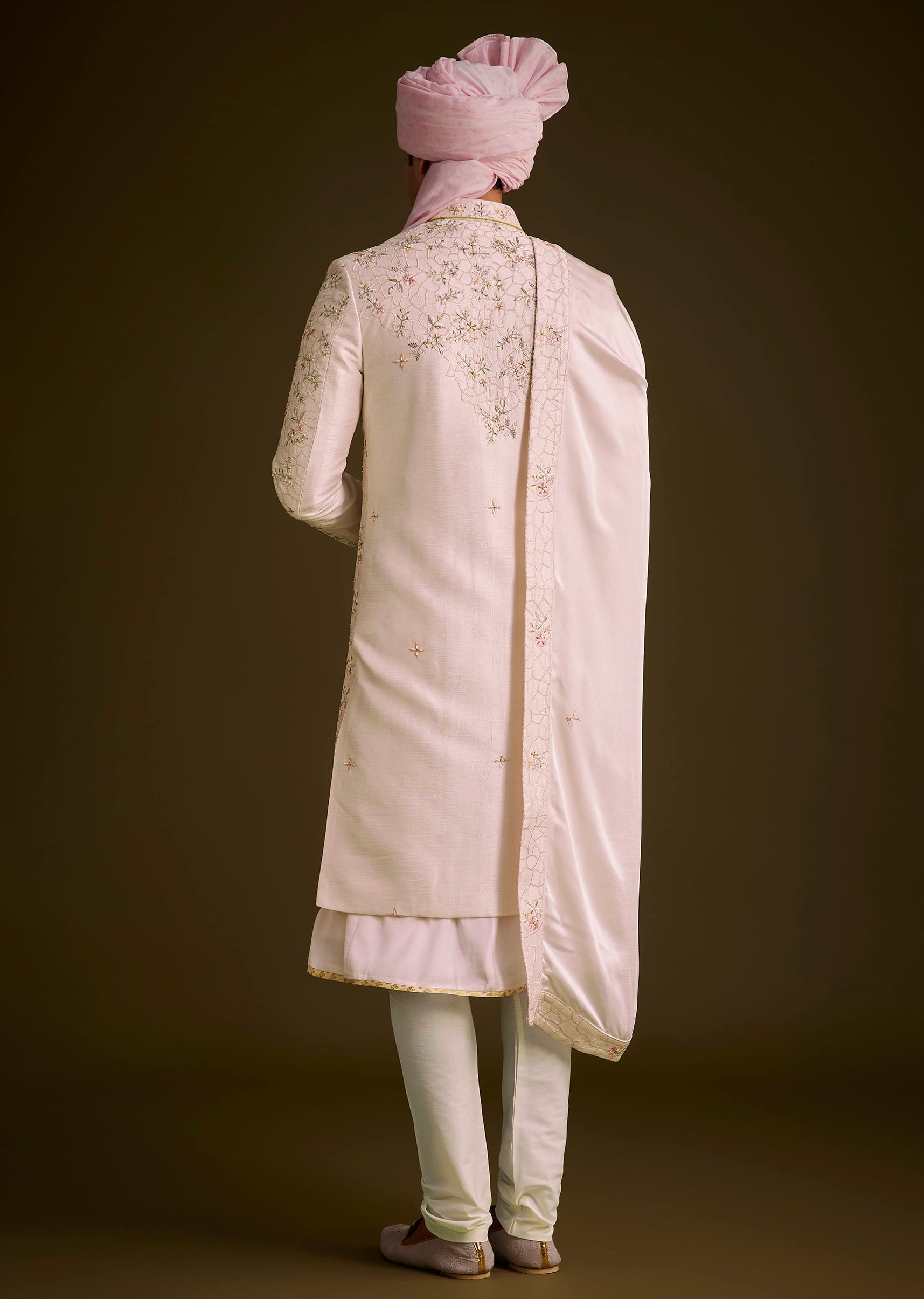 Pink Floral Embroidered Sherwani With Pearl Detailing