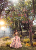 Rose pink floral organza printed lehenga with an intricately embroidered choli and net dupatta