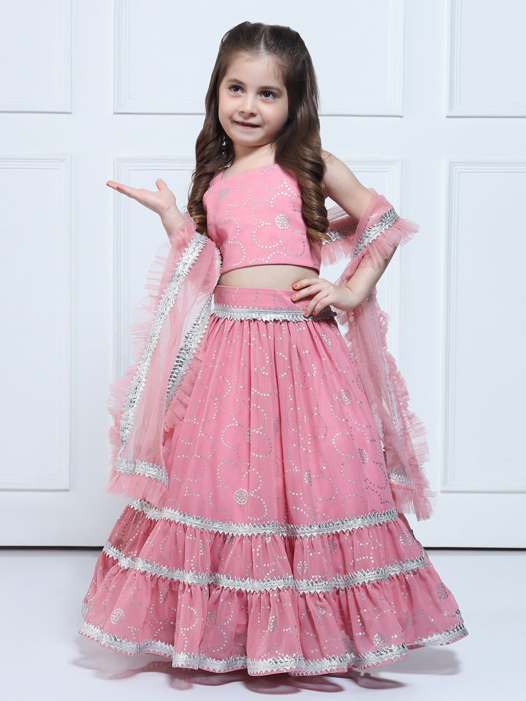 PINK GEORGETTE LEHENGA - A Pink And Silver Printed Lehenga