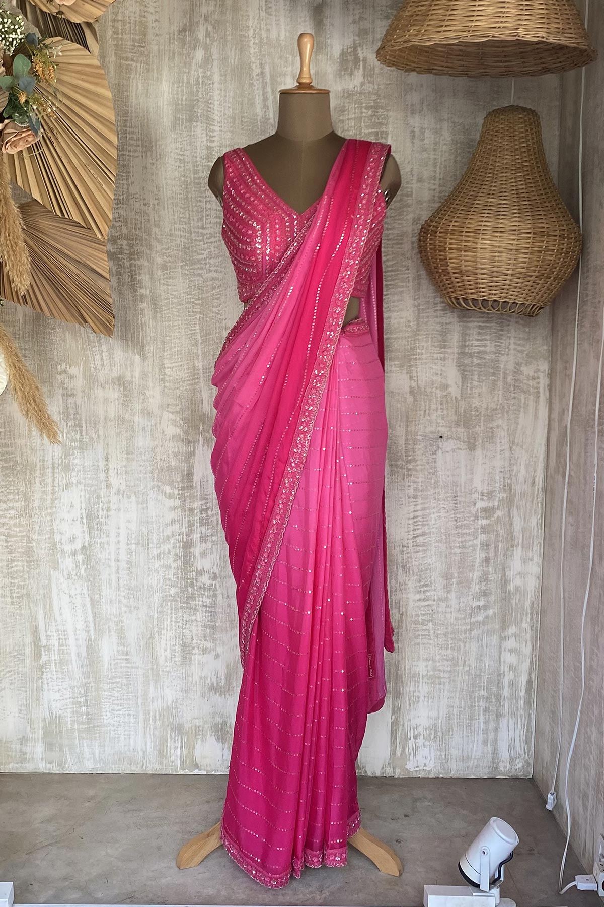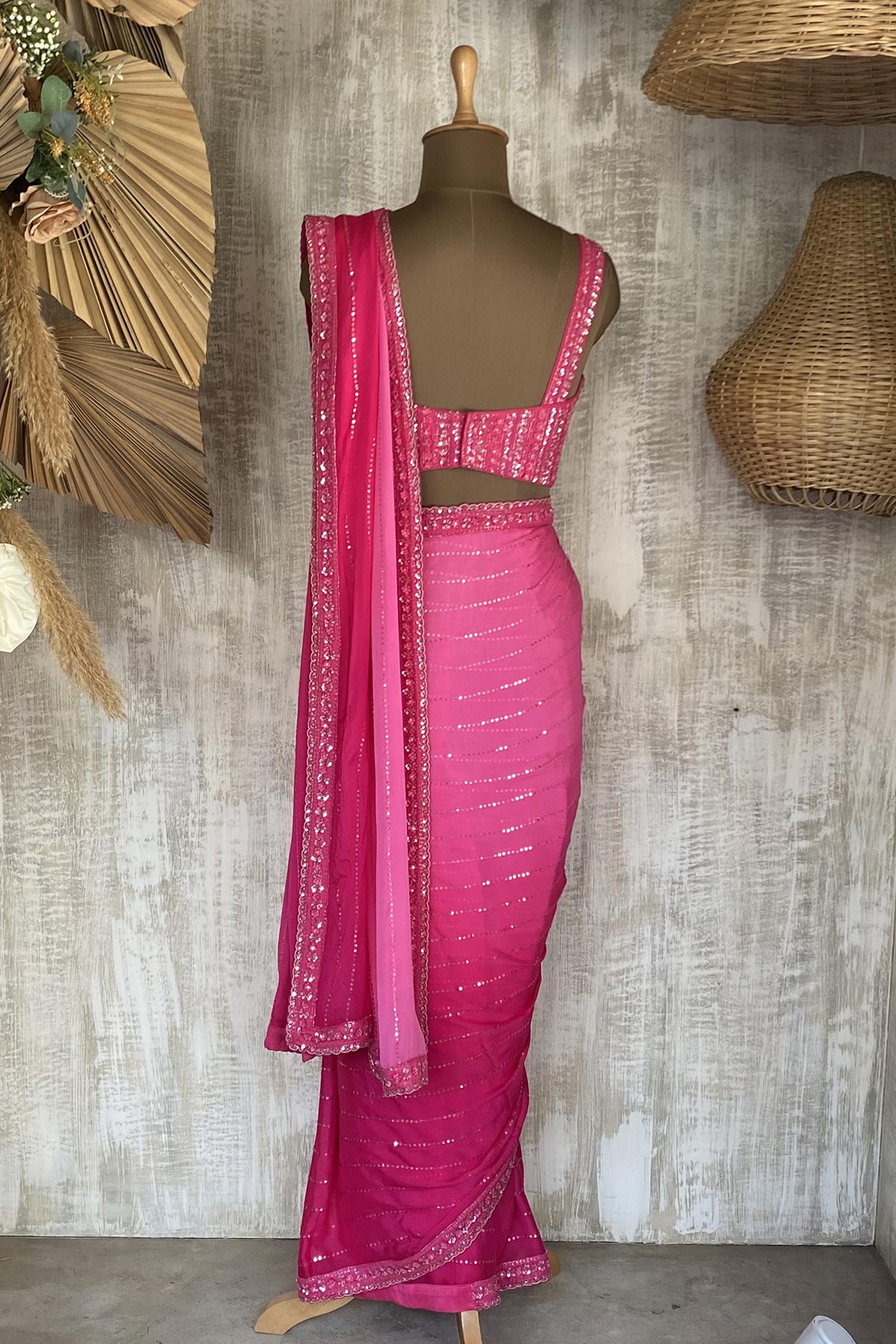 Georgette Sequence Embellished Pre-pleated Saree Paired With A Sequence And Bead Embellished Blouse