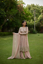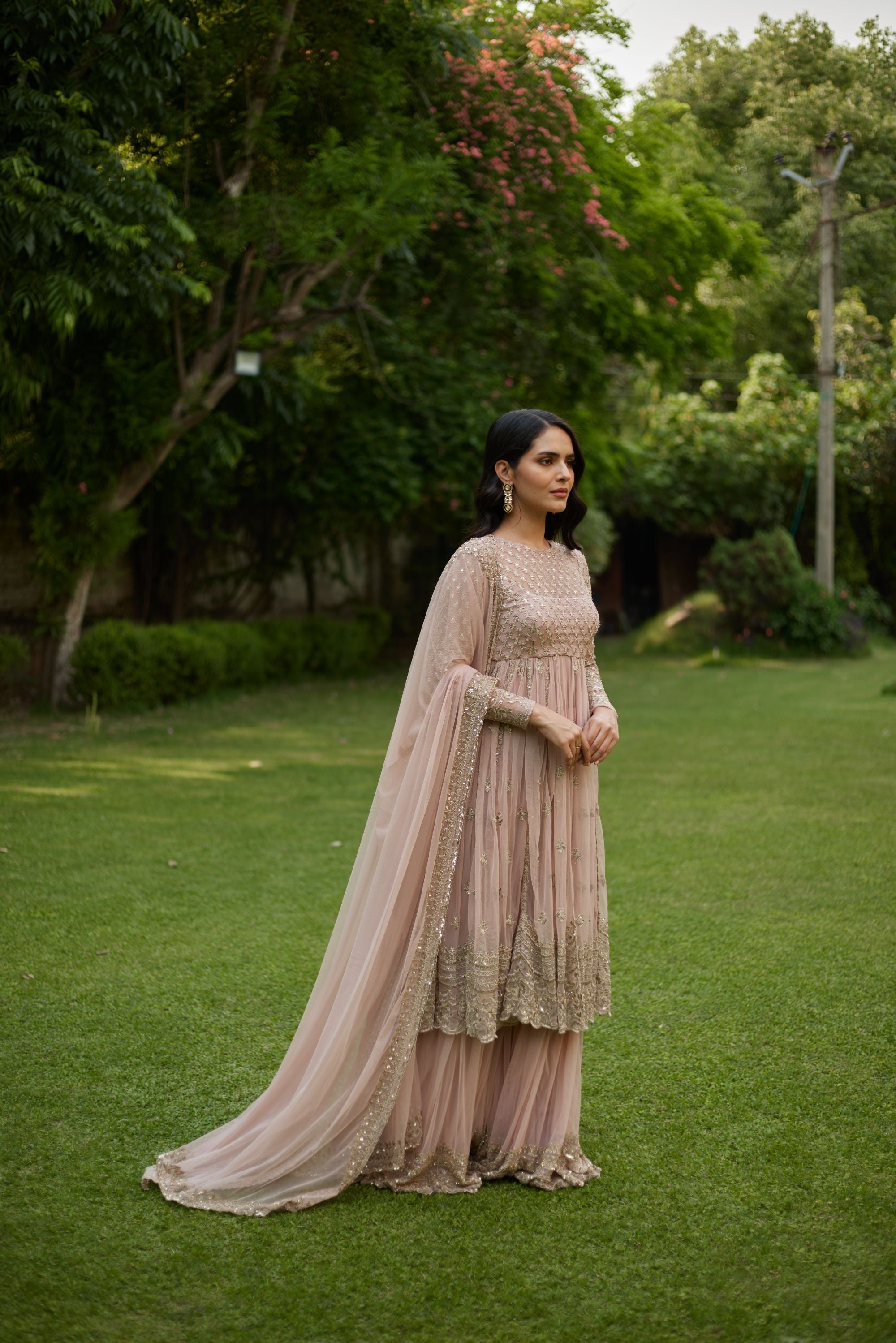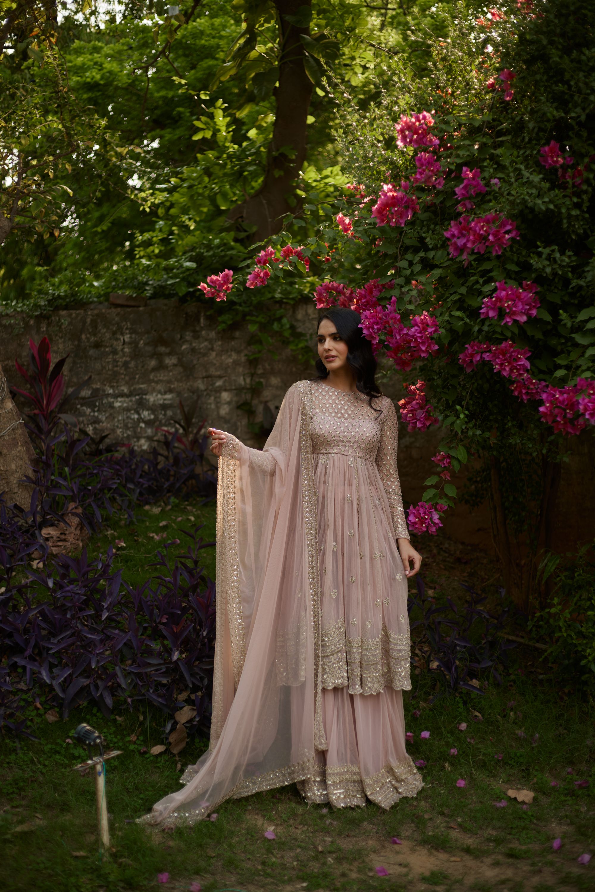 Pink On Pink Thread Work Anarkali And Sharara Set