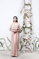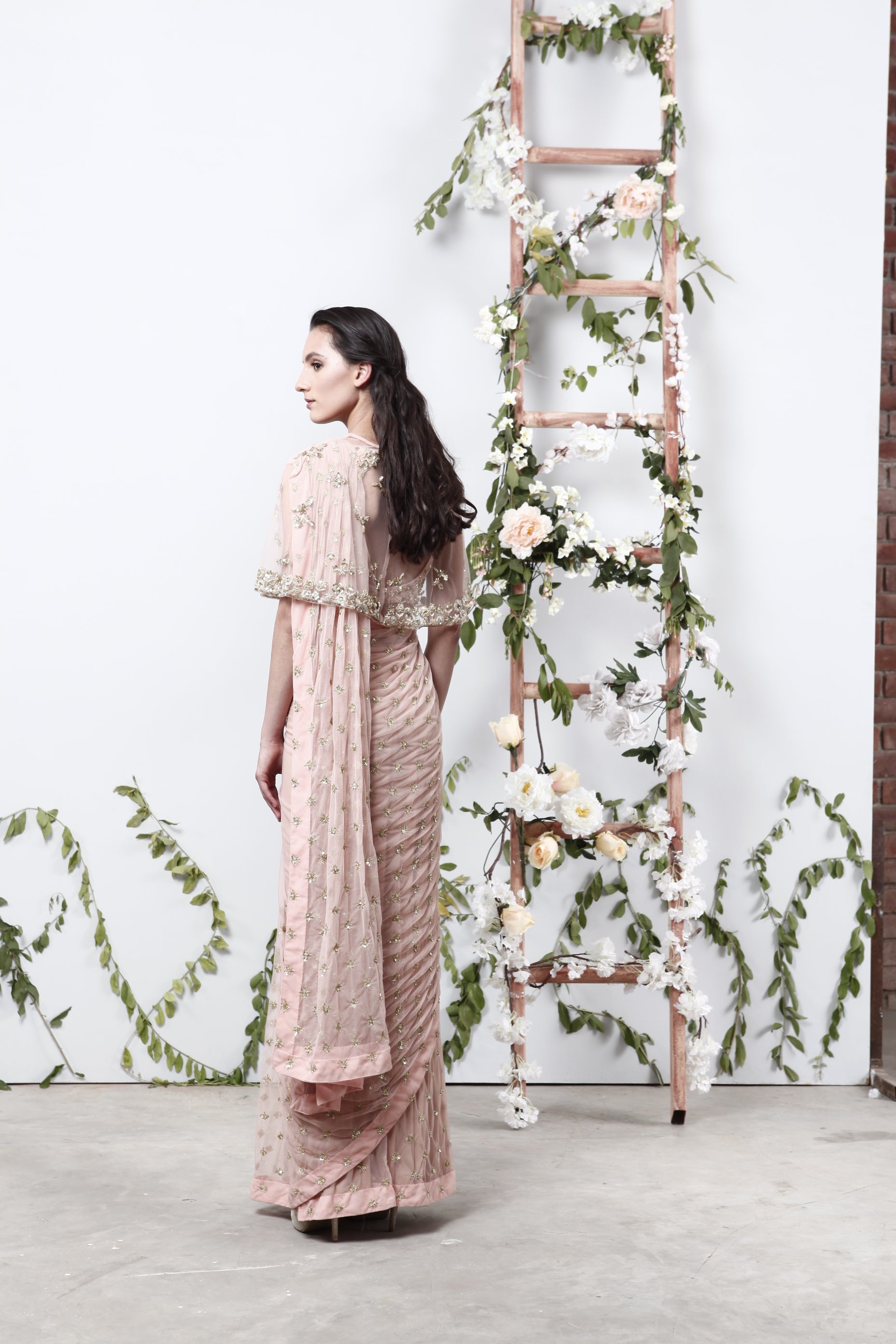 Featuring a PINK SAREE WITH CAPE IN NET.