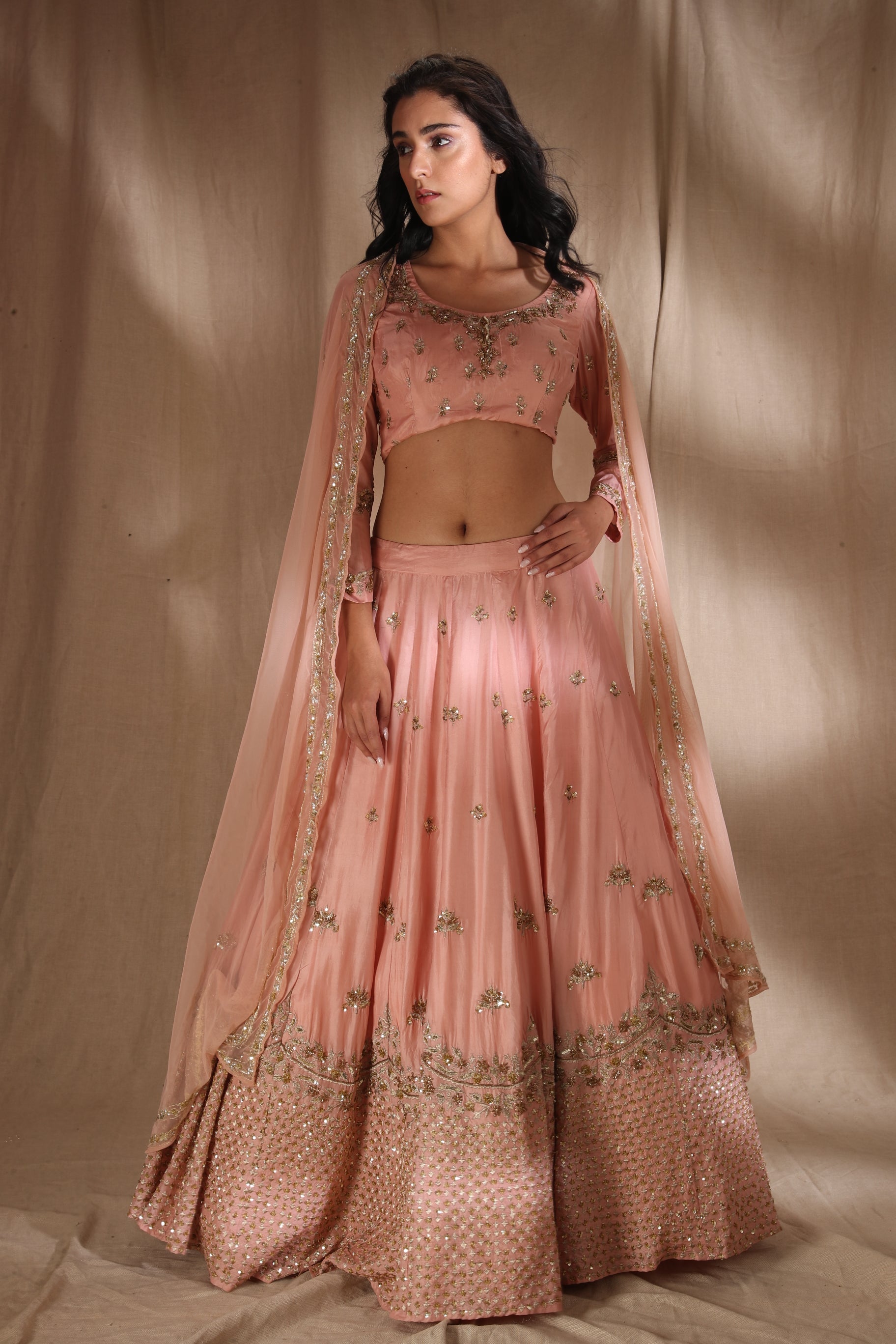Featuring a PINK ZARI SILK LEHENGA IN SILK.