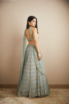 Featuring a Powder Blue with Gold Bootie work lehenga set.