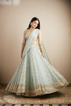 POWDER BLUE WITH GOLD BOOTIE WORK LEHENGA SET