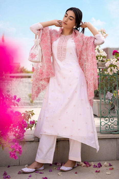 Fabrics : Handwoven Chanderi (Kurta), Cotton (Salwar) and Silk Organza (dupatta)