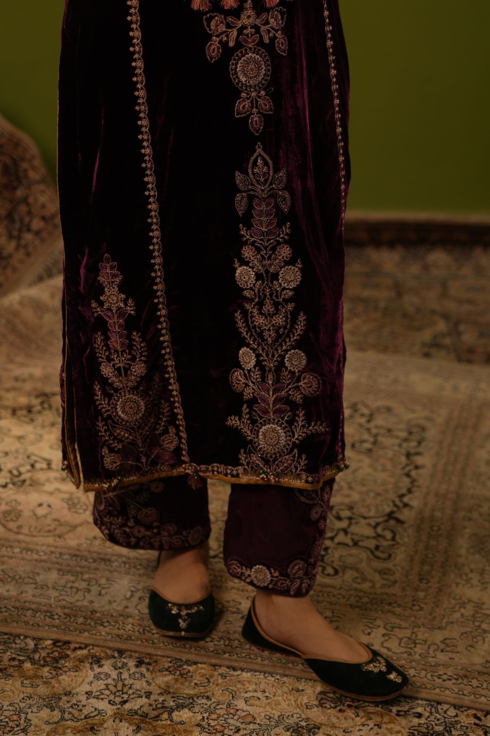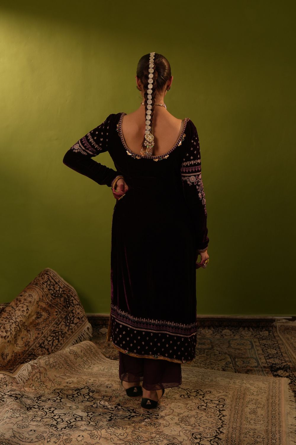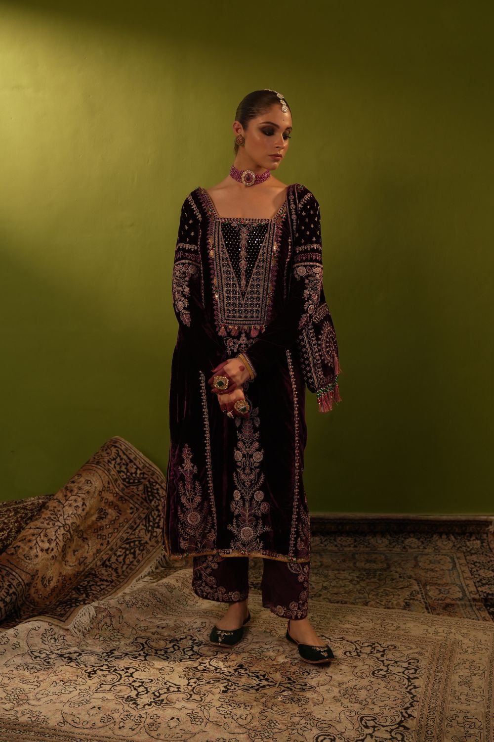 Purple Velvet Kurta Set