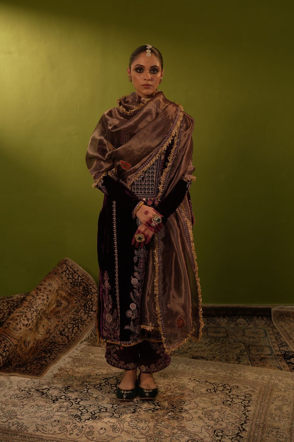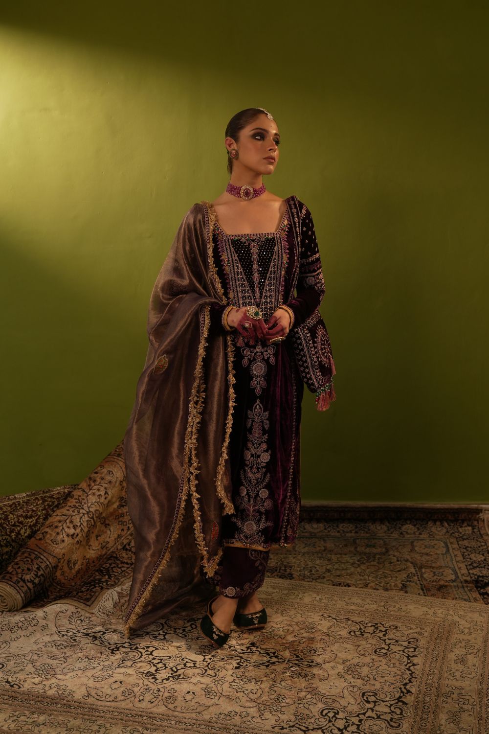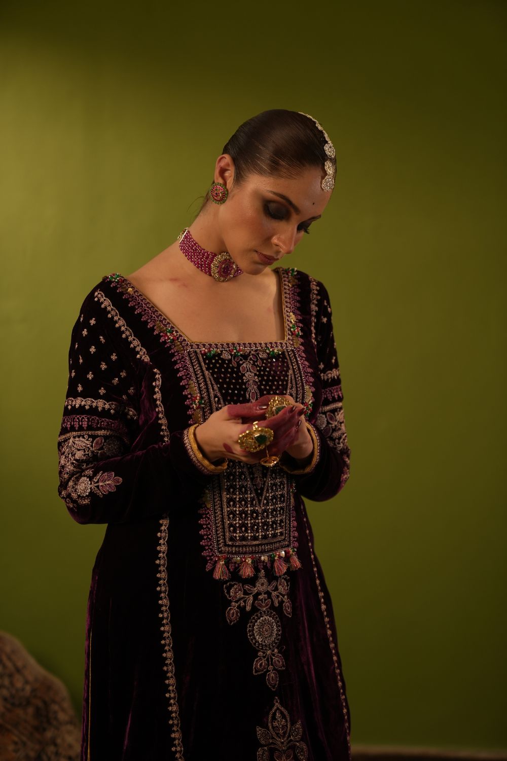 Purple Velvet Kurta Set