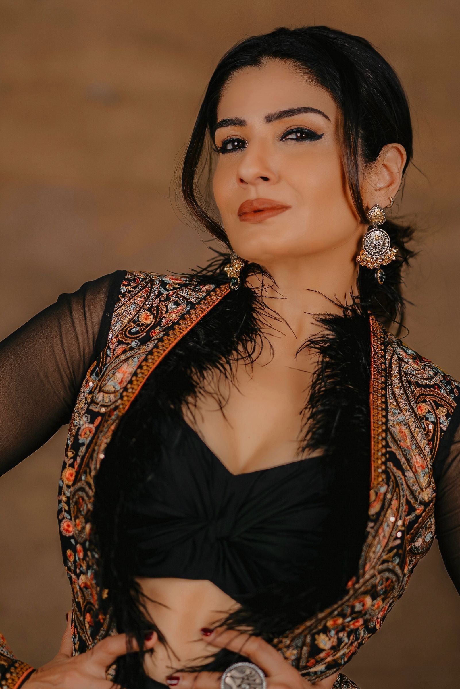 Raveena Tandon In Black Kashida Hi-Low Jacket