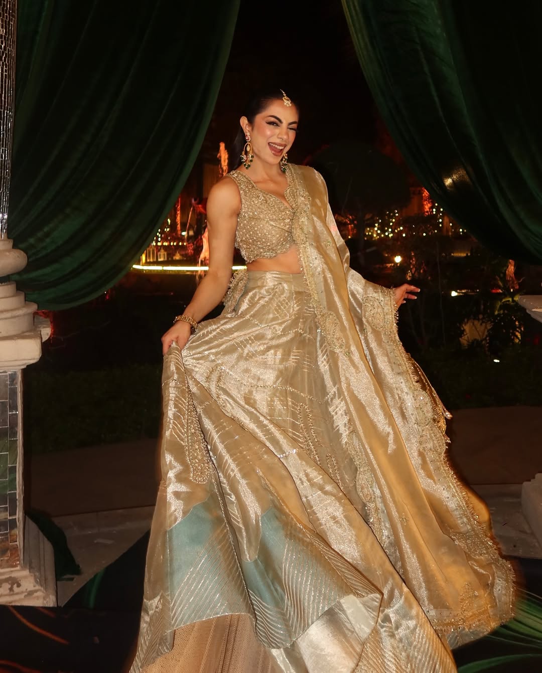 Ravkirat Kaur Pearl gold silk zari tissue lehnga set
