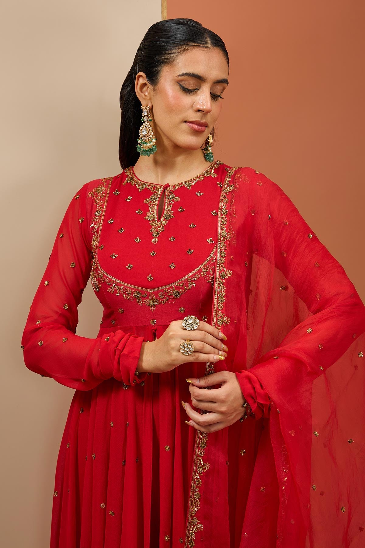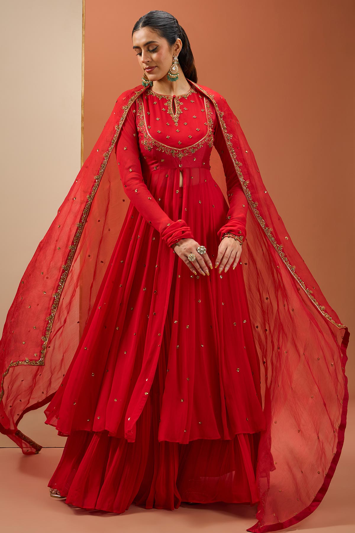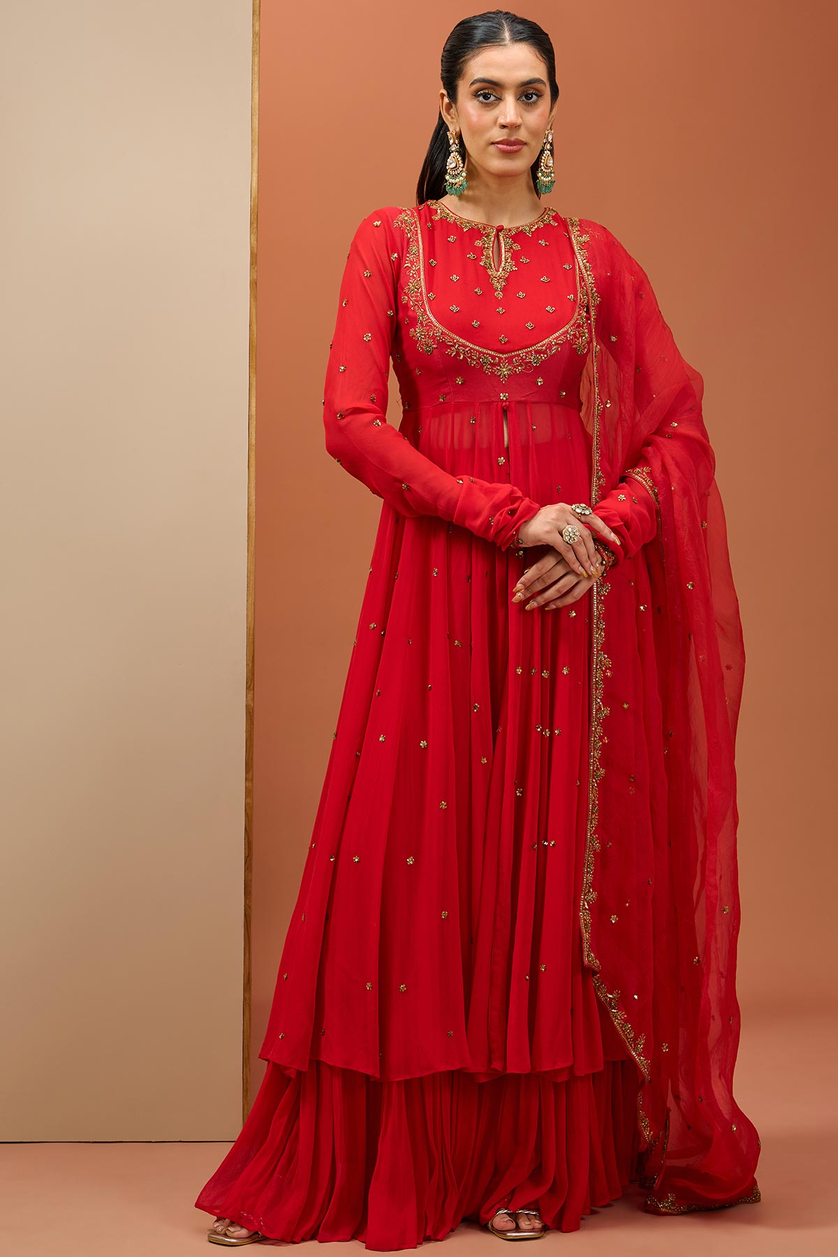 Red Anarkali Set