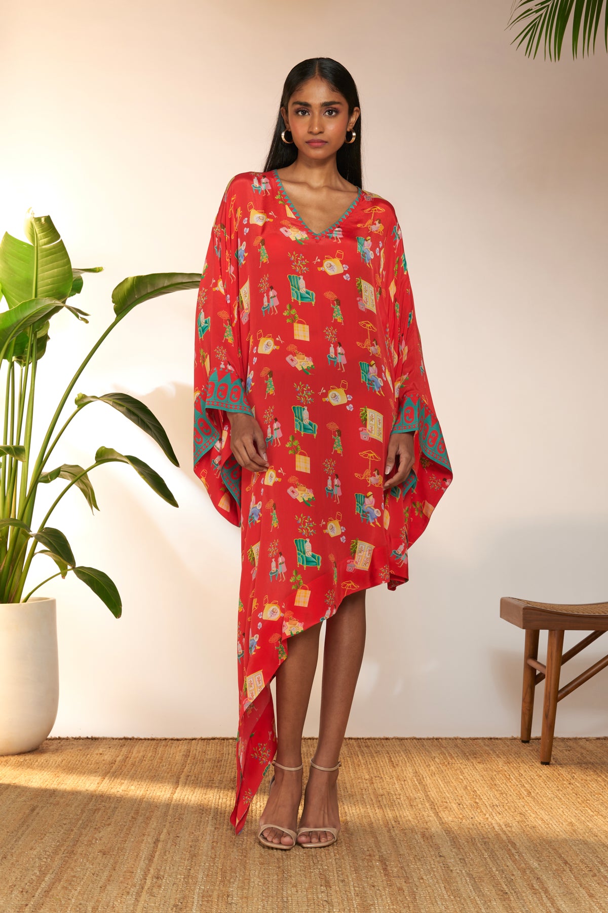 Red Jam & Toast Asymmetrical Kaftan
