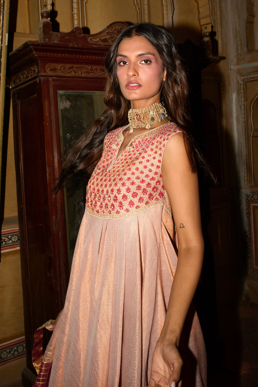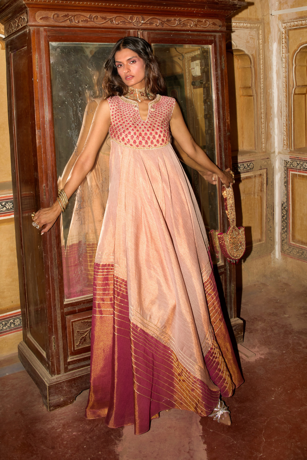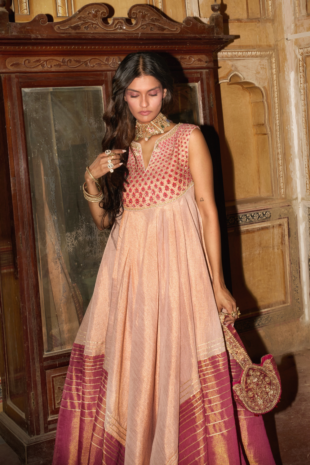 Rose gold and Hot pink choga