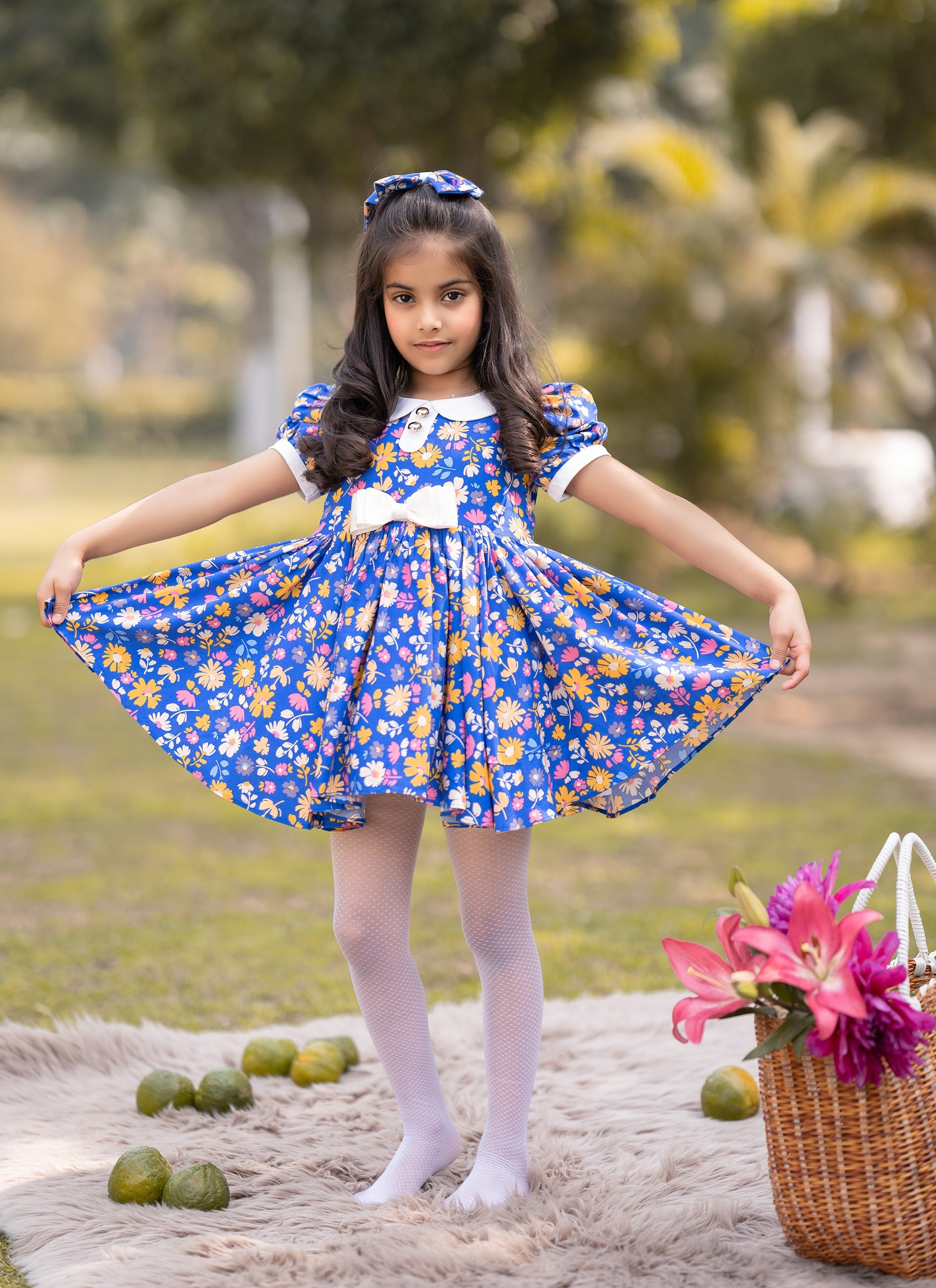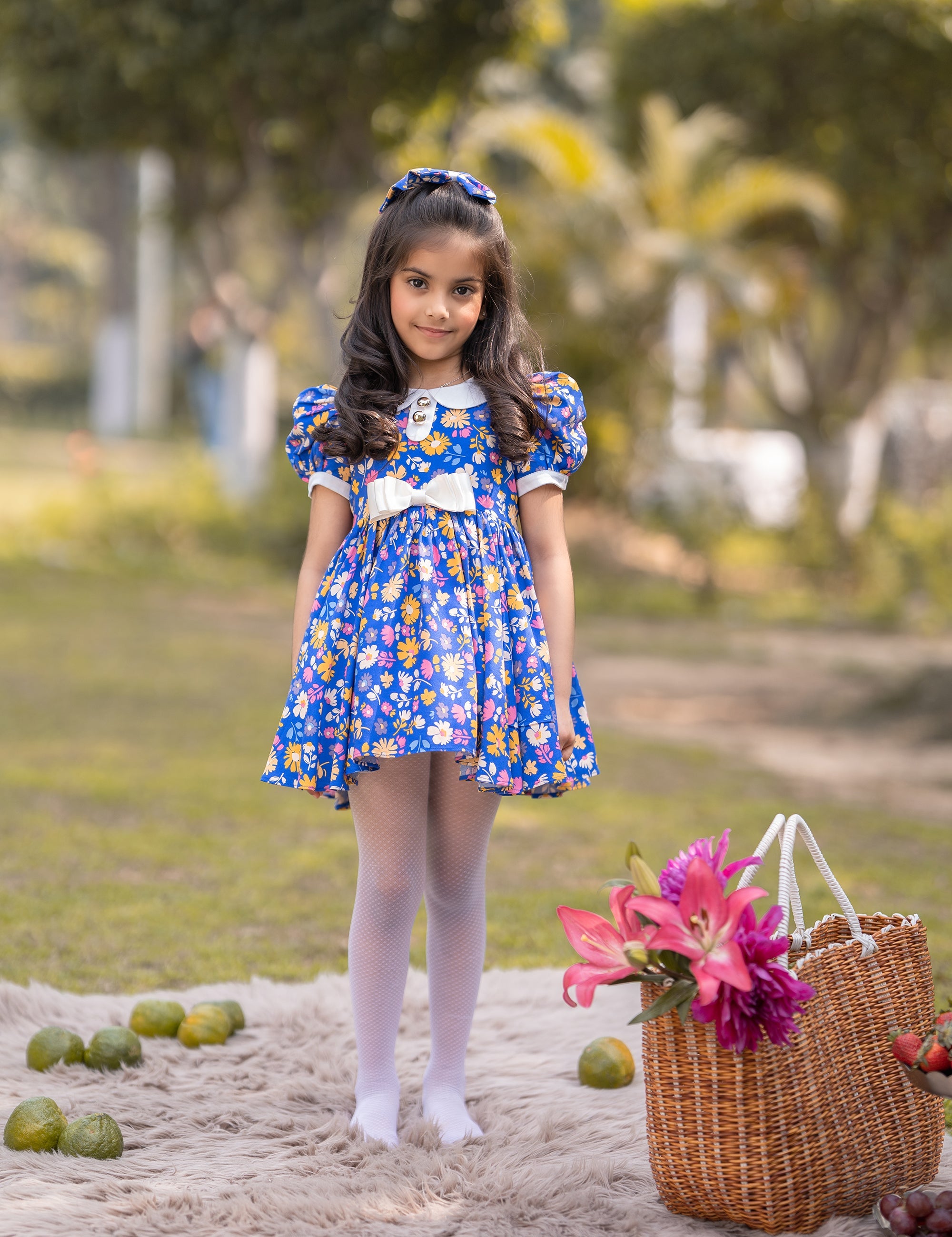 - ROYAL BLUE WITH A COLOURFUL FLORAL PATTERN