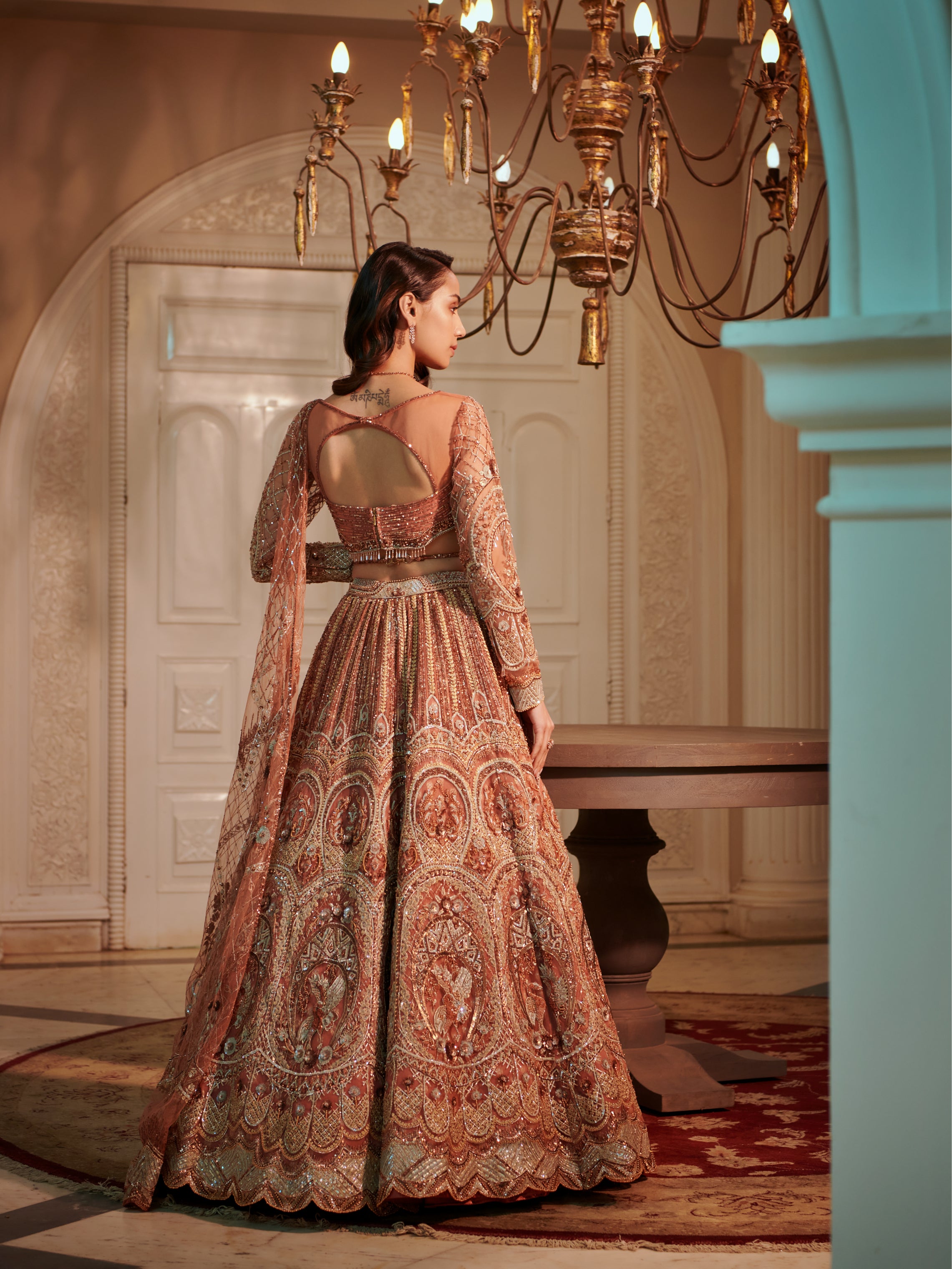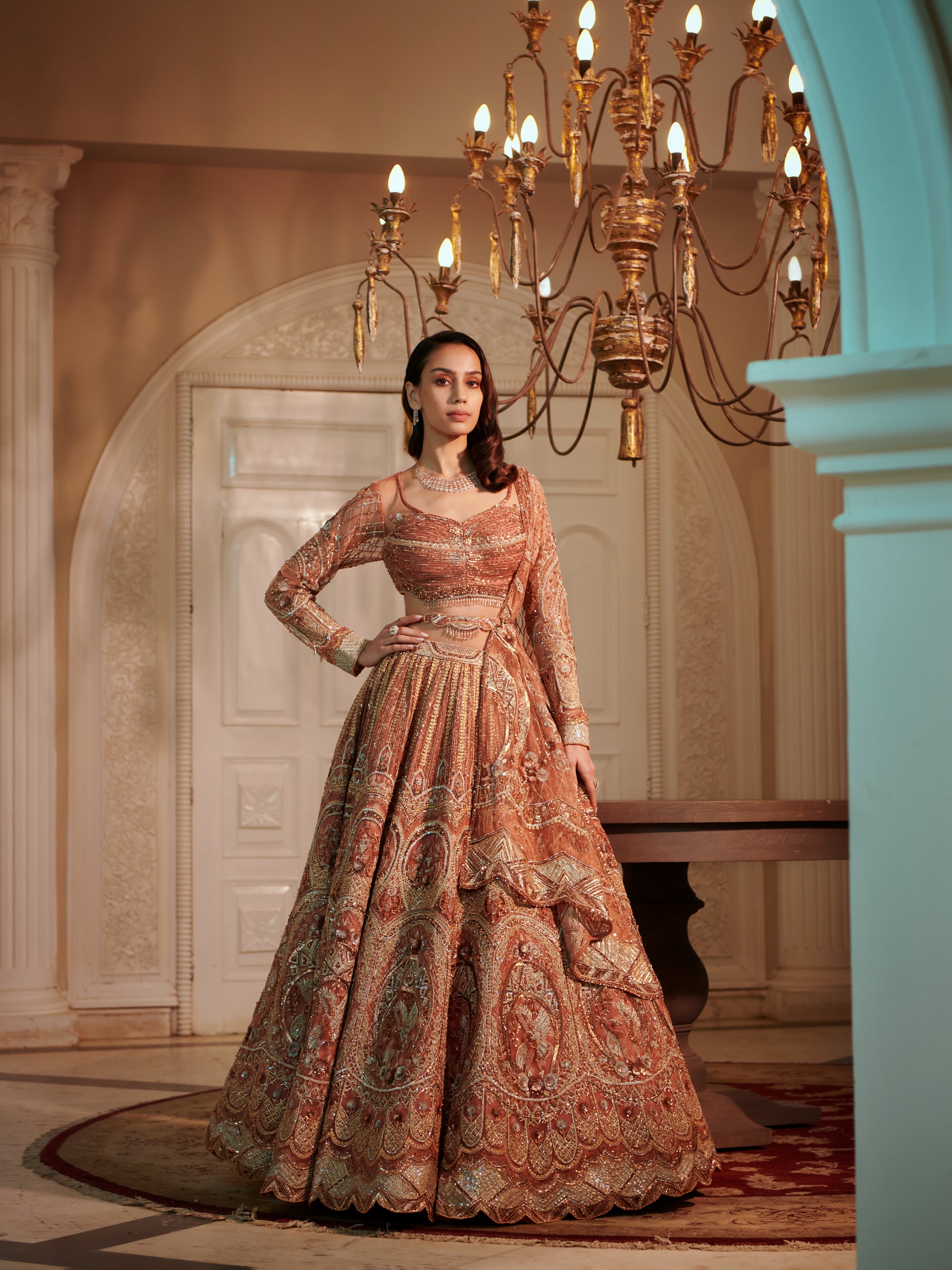 This lehenga has skillfully embroidered work. It comes with beautifully carfted pattern, heavily embroidered skirt and heavily embroidered dupatta to complete the look.
