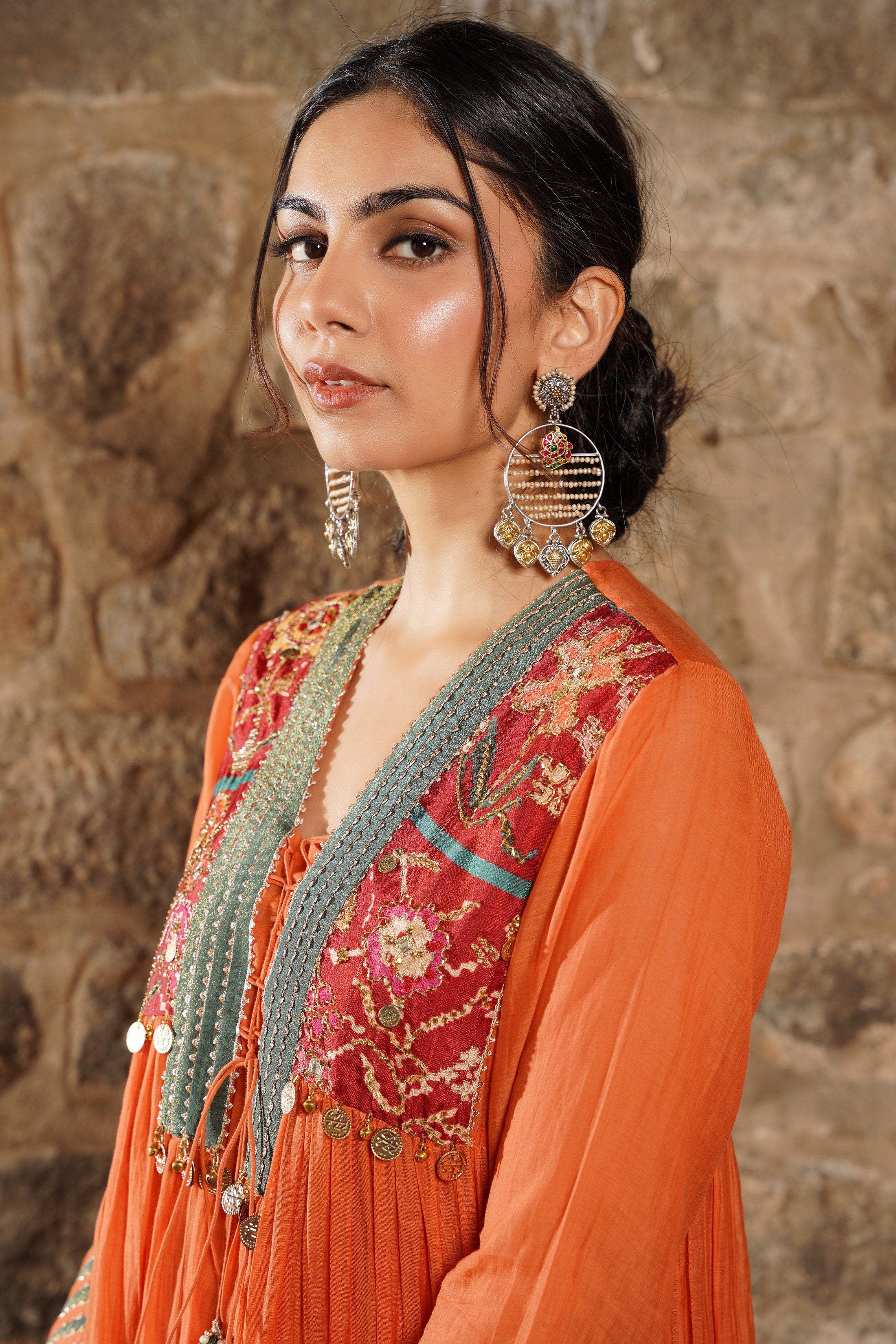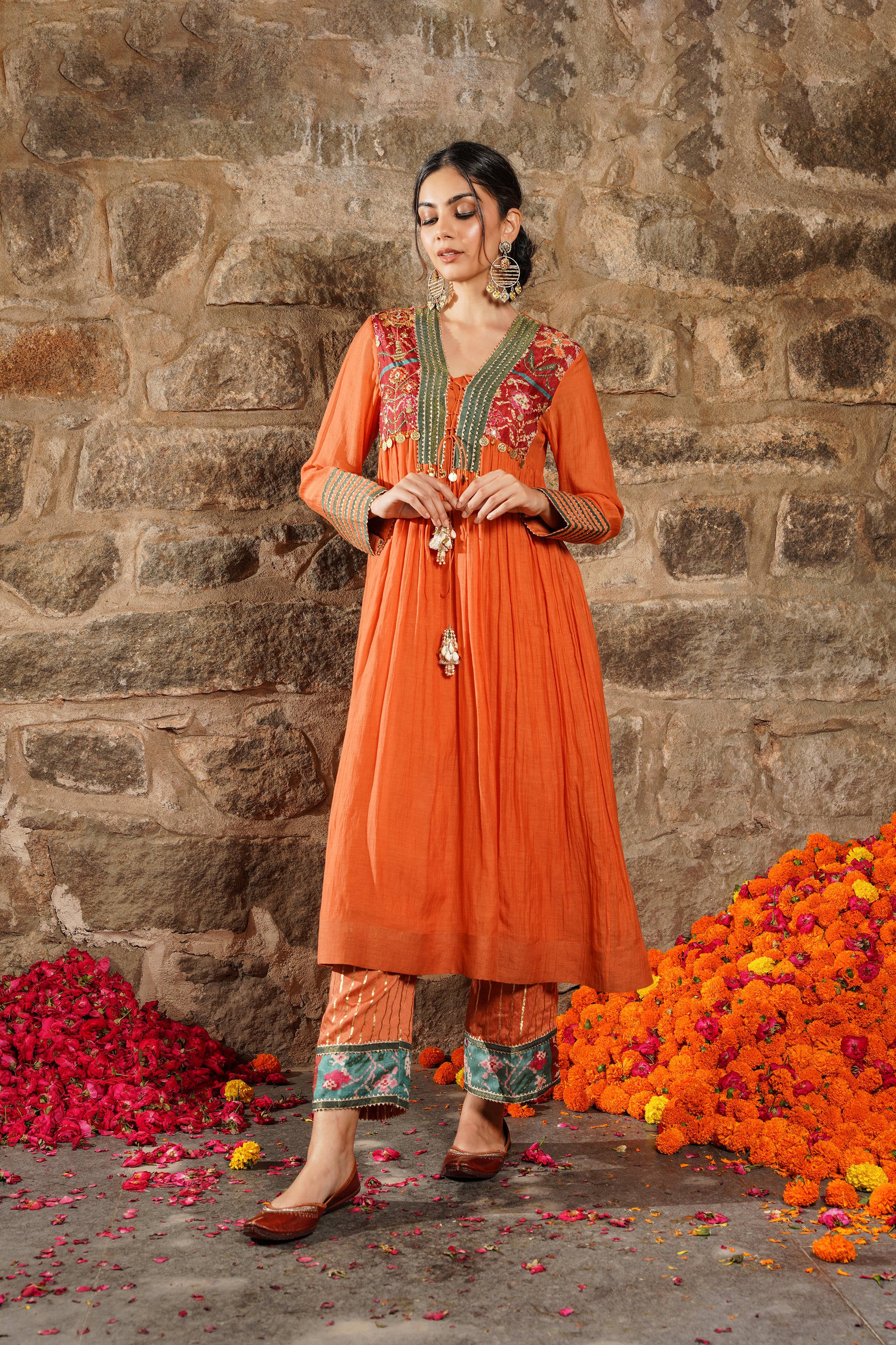 Saanjh- Zesty Orange Embroidered Kurti Set