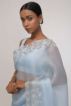 Fabrics: Silk Organza and Twill Satin (Saree), Georgette Satin (Blouse)