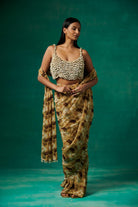 Shells embellished blouse and drape saree