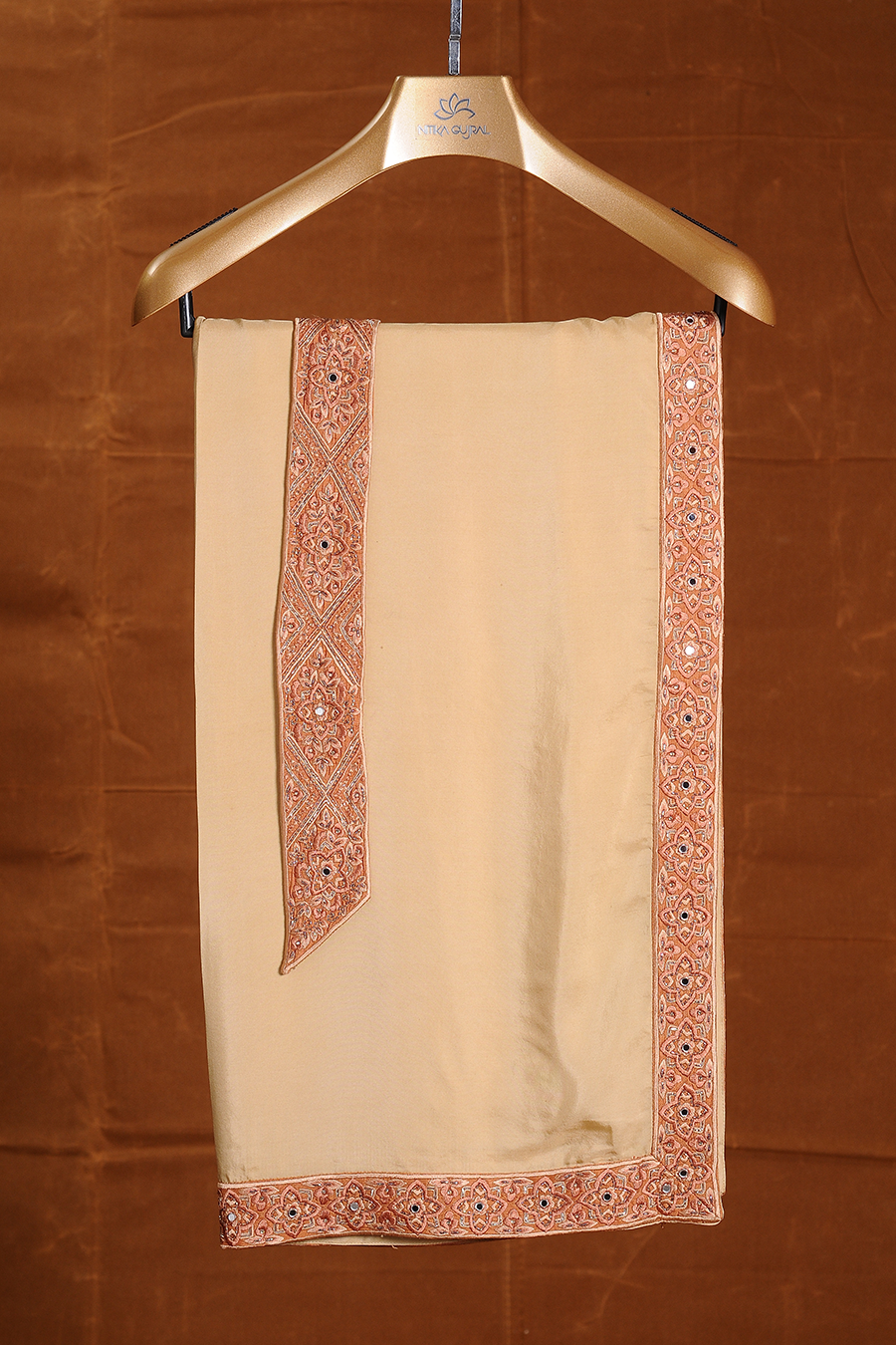 Rust Raw Silk Belt With A Beige Silk Stole With An All Round Embroidered Border For Sherwani