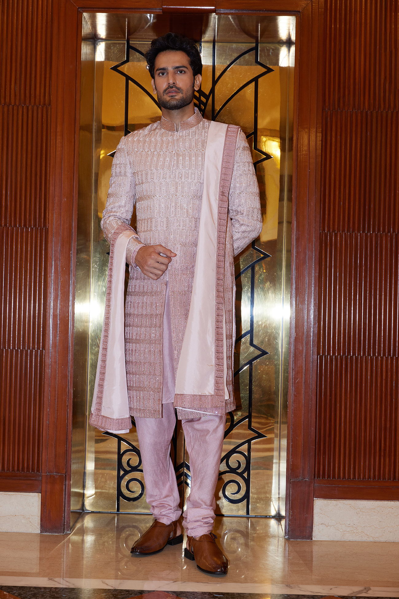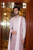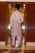 MULBERRY OMBREY DYED RAW SILK SHERWANI KURTA CHURIDAR SET