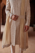 Raw Silk Worked Belt And Tissue Stole With All Around Worked Border For Sherwani