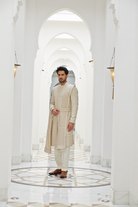 CREAM RAW SILK SHERWANI KURTA TROUSER SET