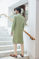 MINT GREEN RAW SILK SHERWANI KURTA TROUSER SET