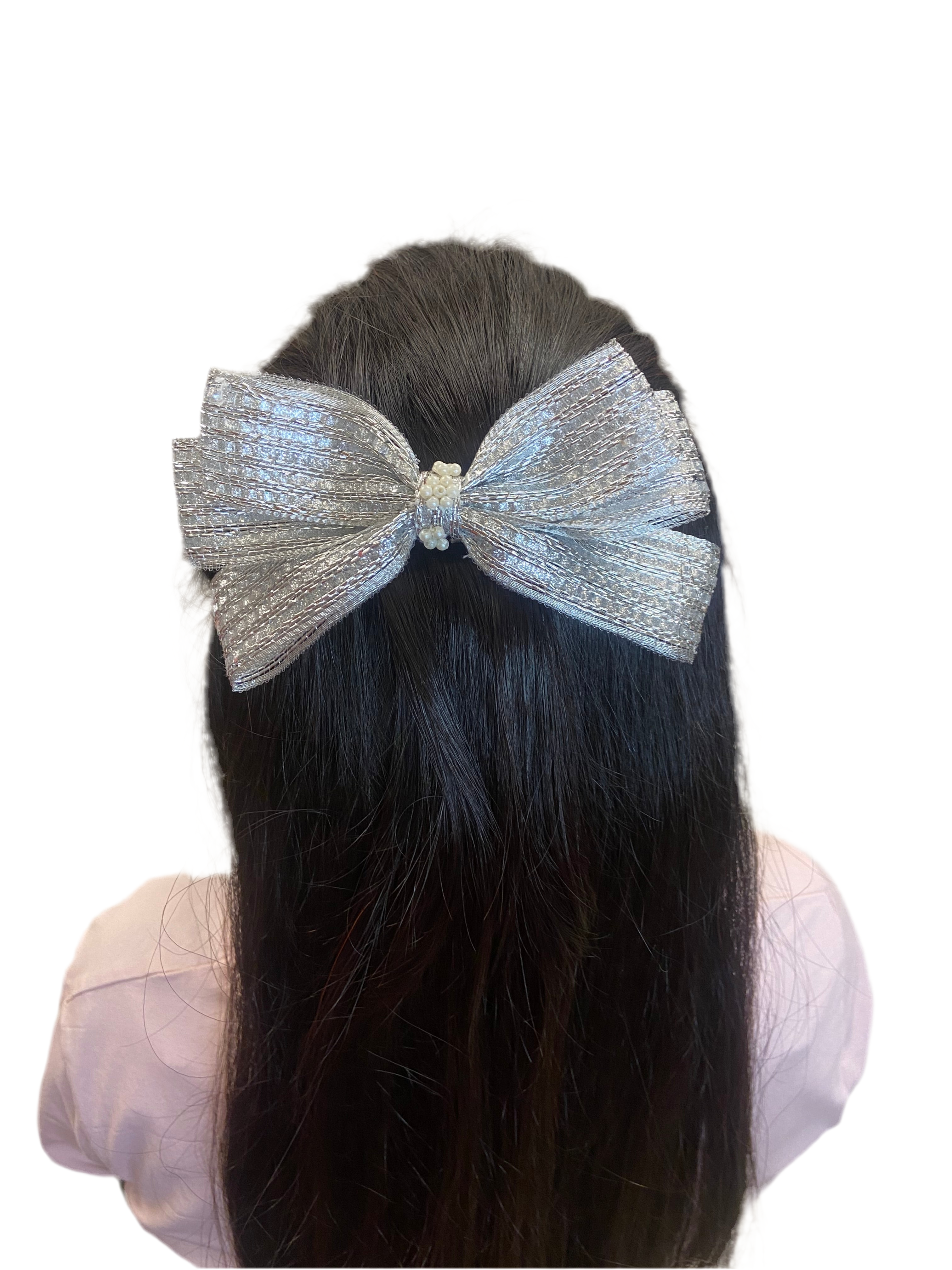 Silver hair bow clip