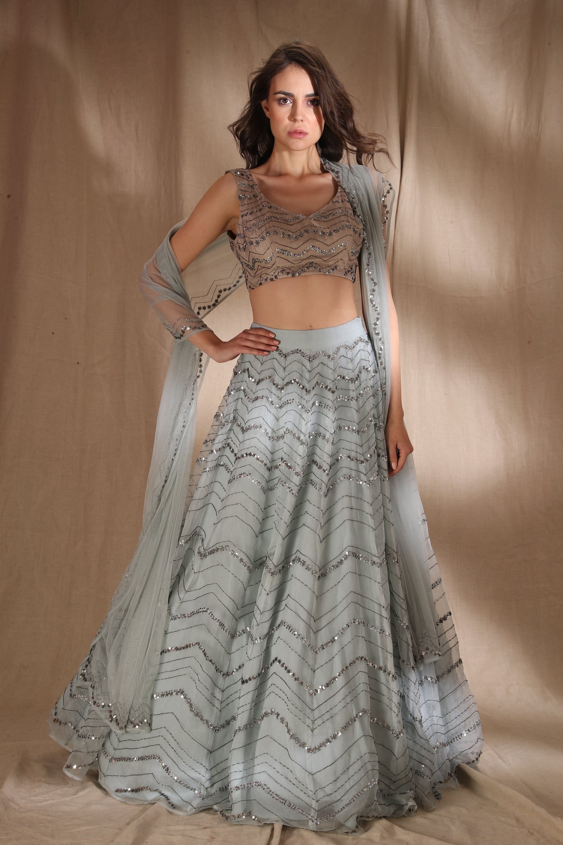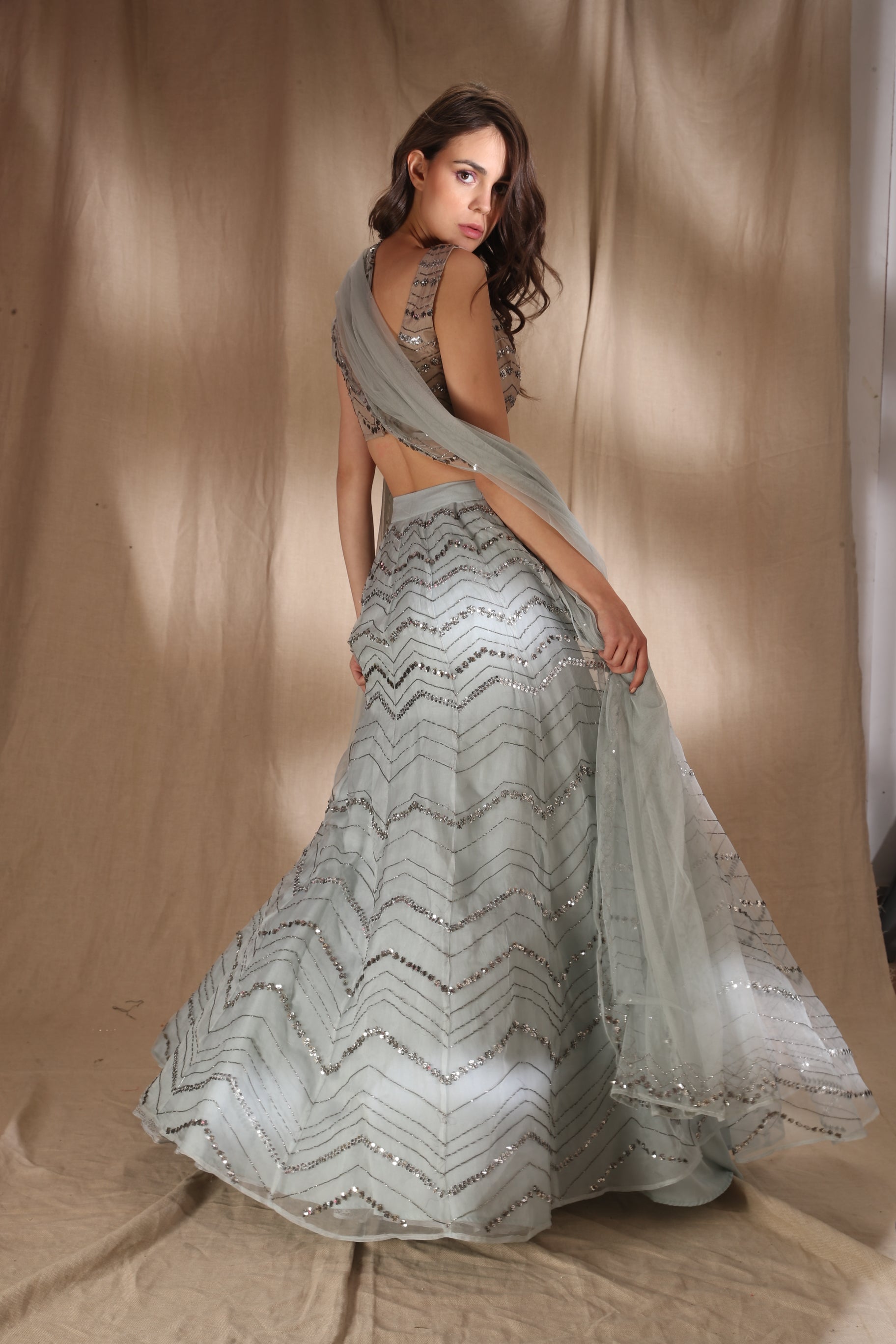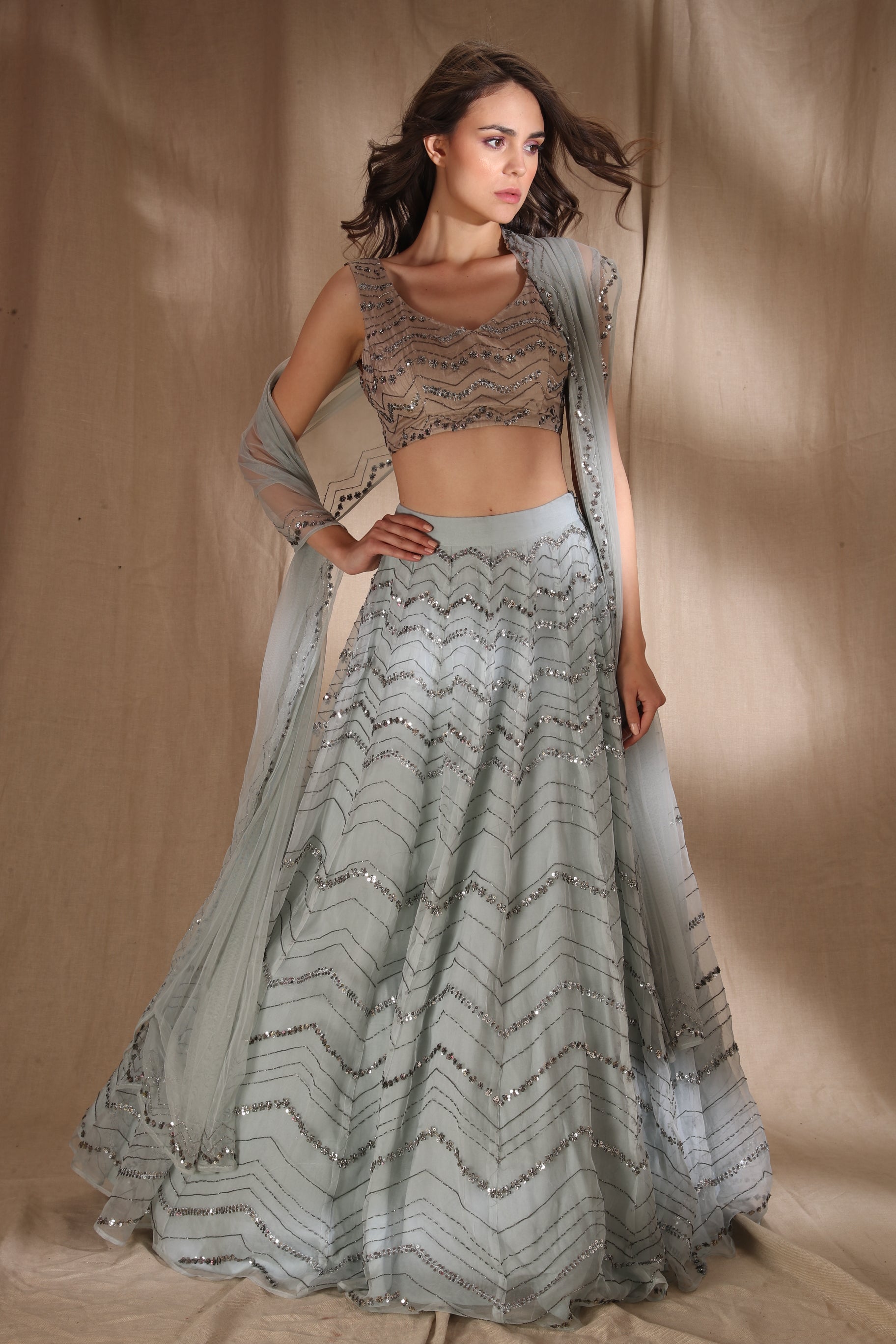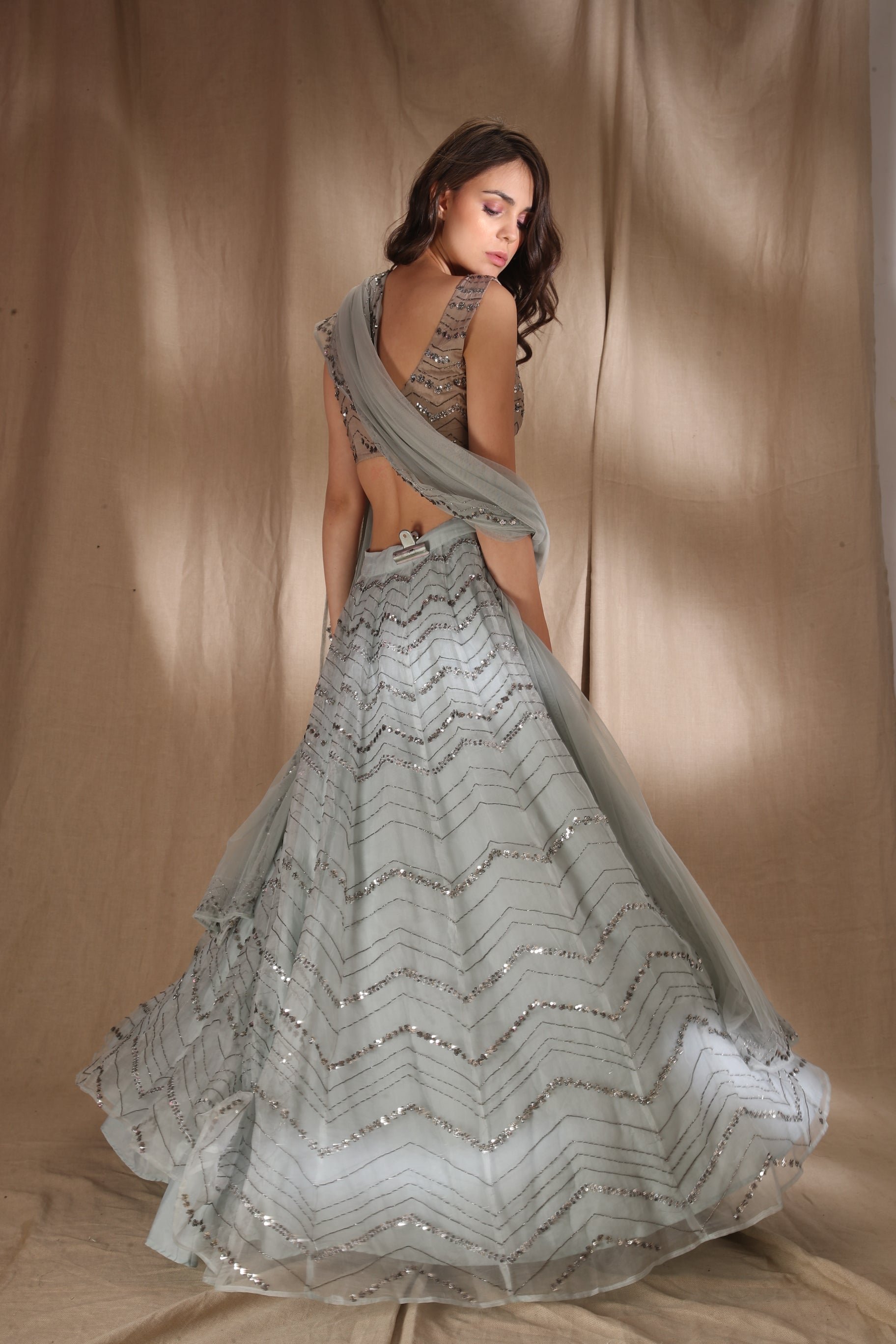 Featuring a SKY BLUE ORGANZA LEHENGA SET IN ORGANZA.