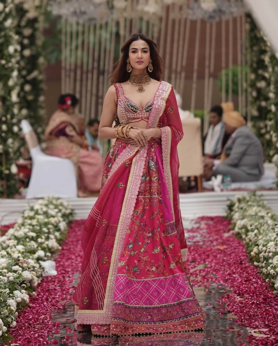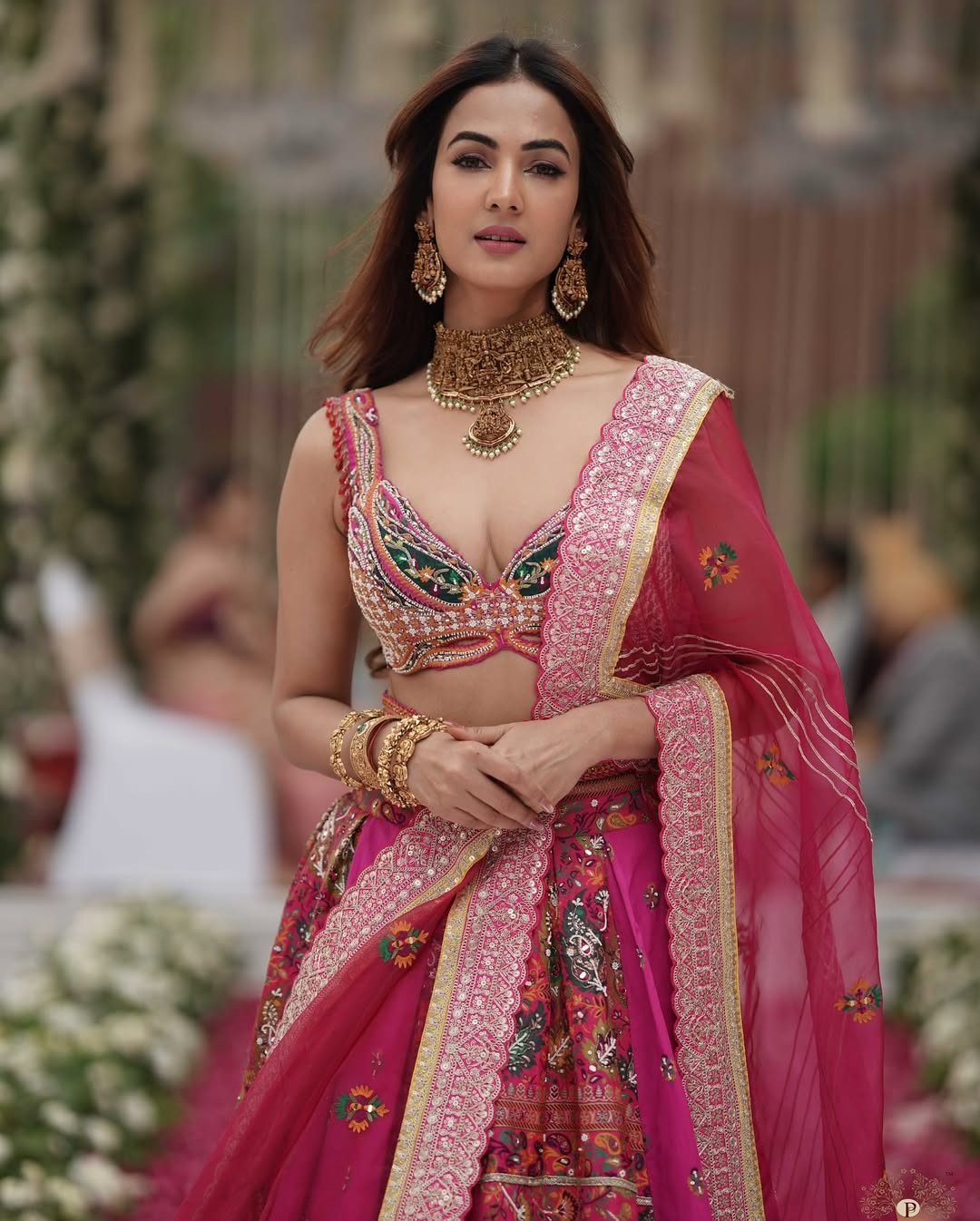Sonal Chauhan Hot pink jacquard silk banarasi lehenga set