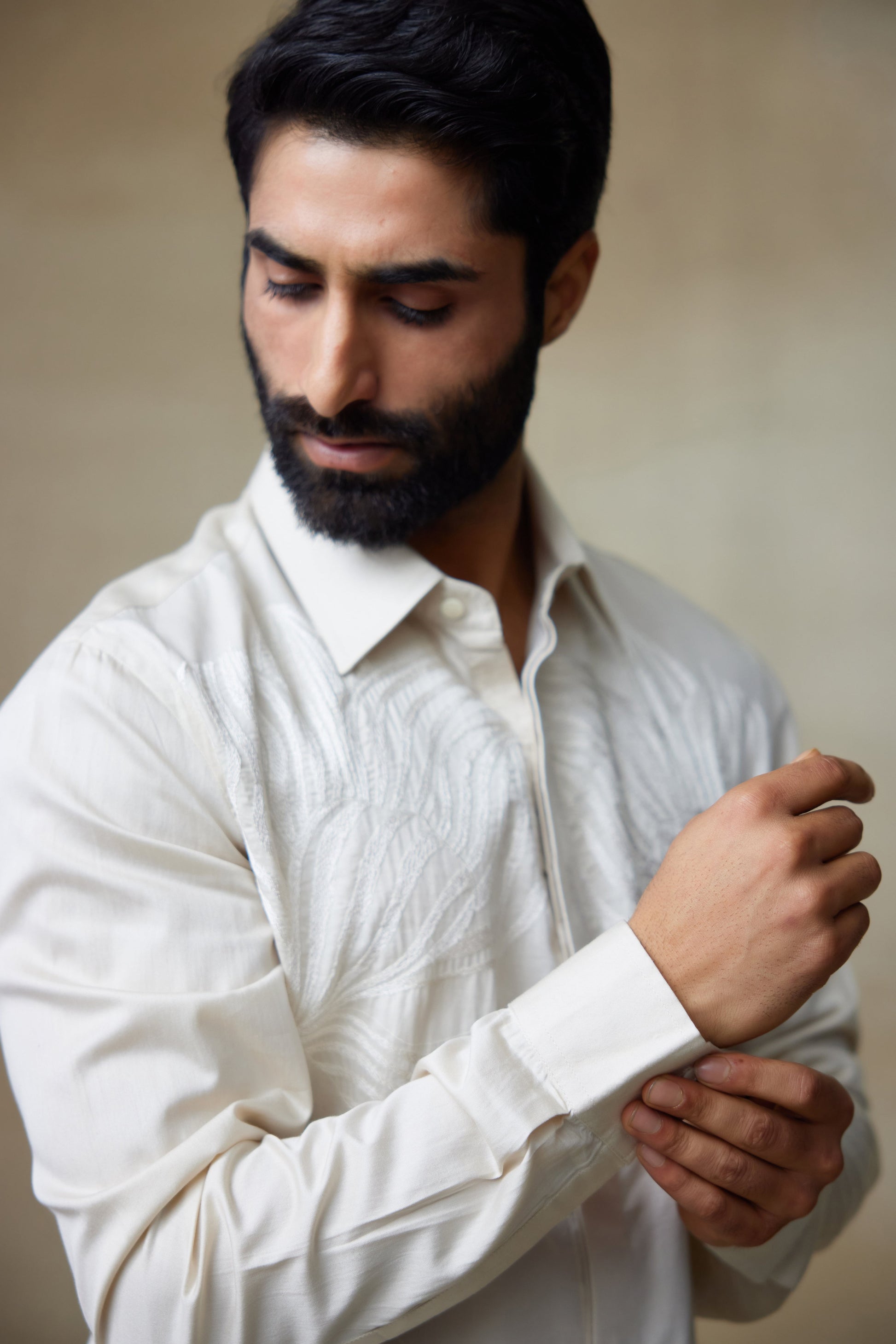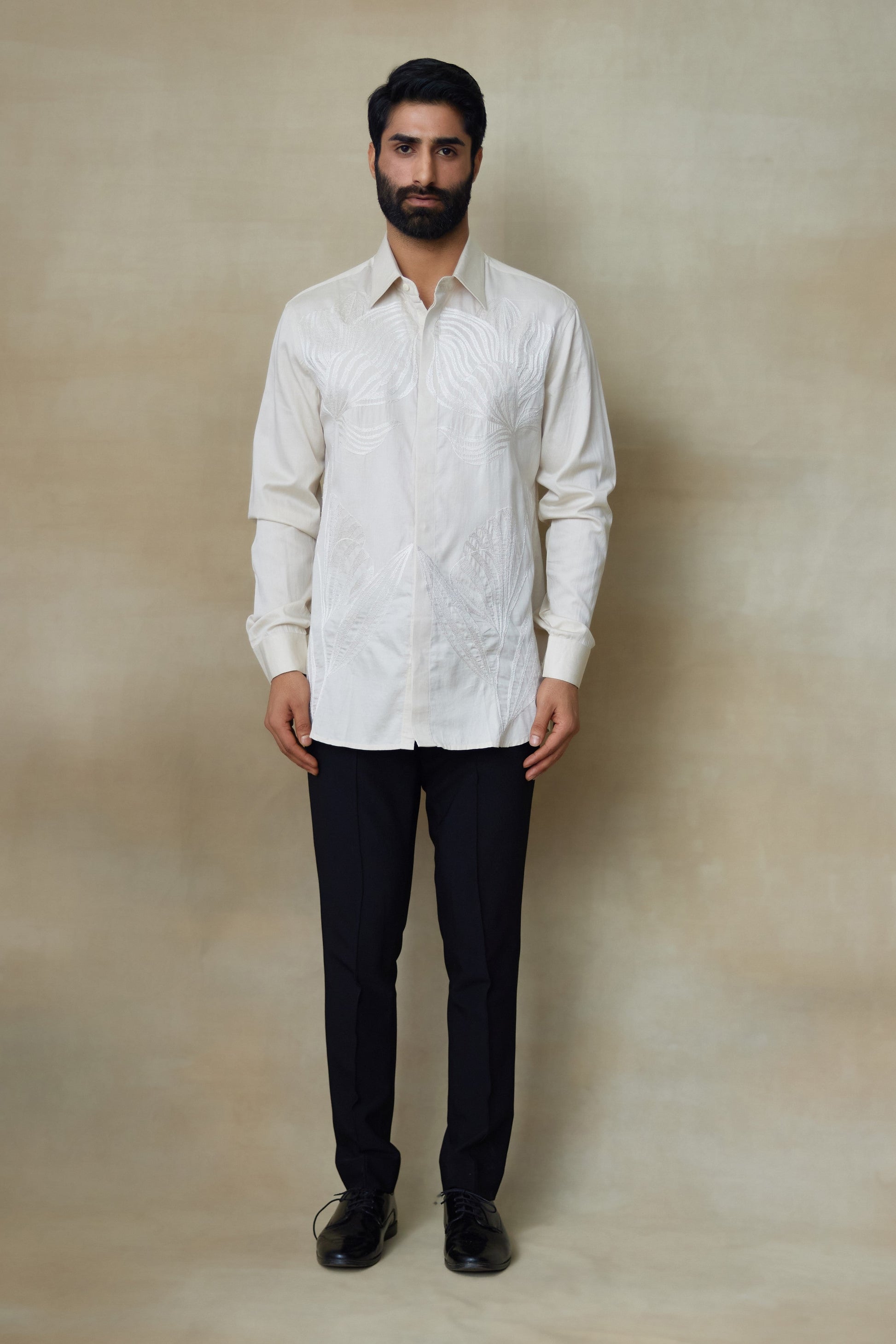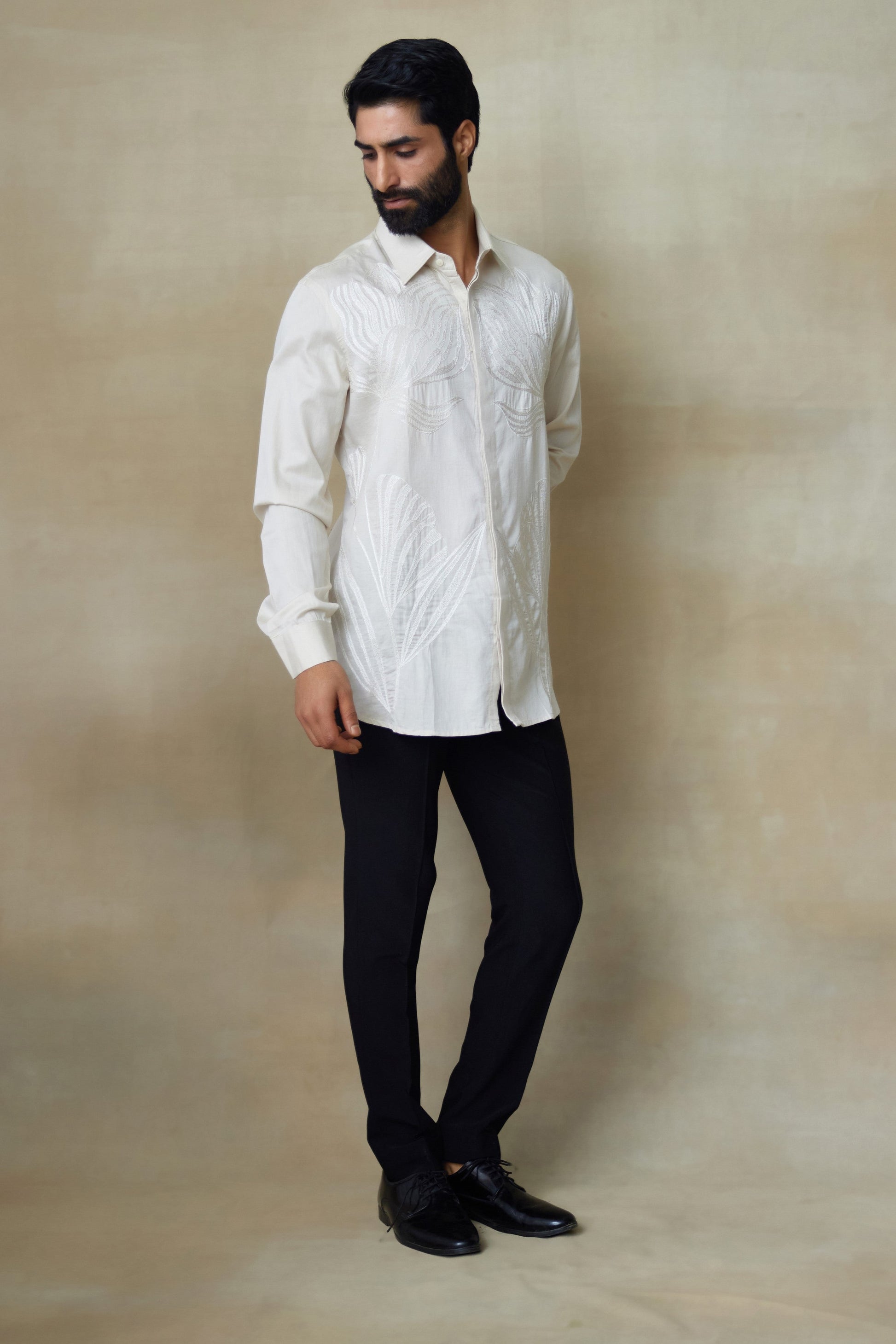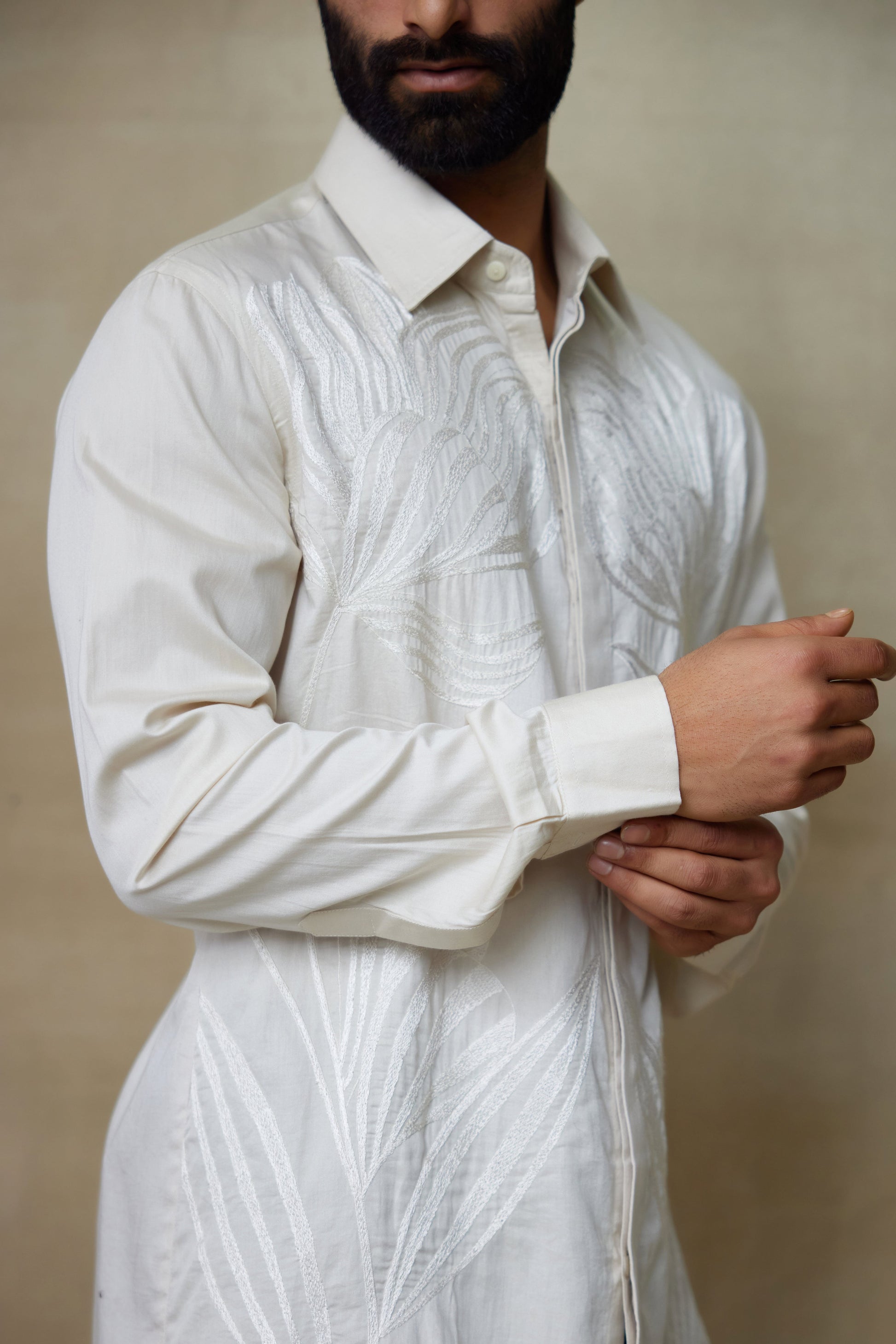 Our Embroidered Cotton Shirt Made With Resham Embroidery Flower Motif With Hand Work Embellishment.