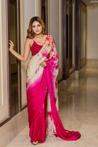 Tea green tie and dye with pink ombre drape saree and rani pink sequin blouse