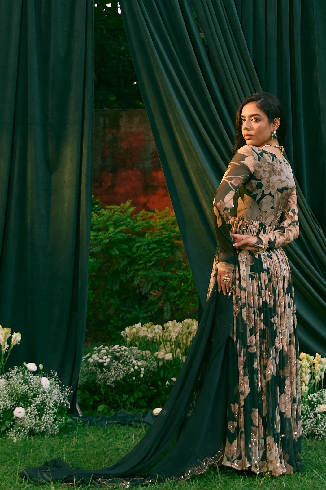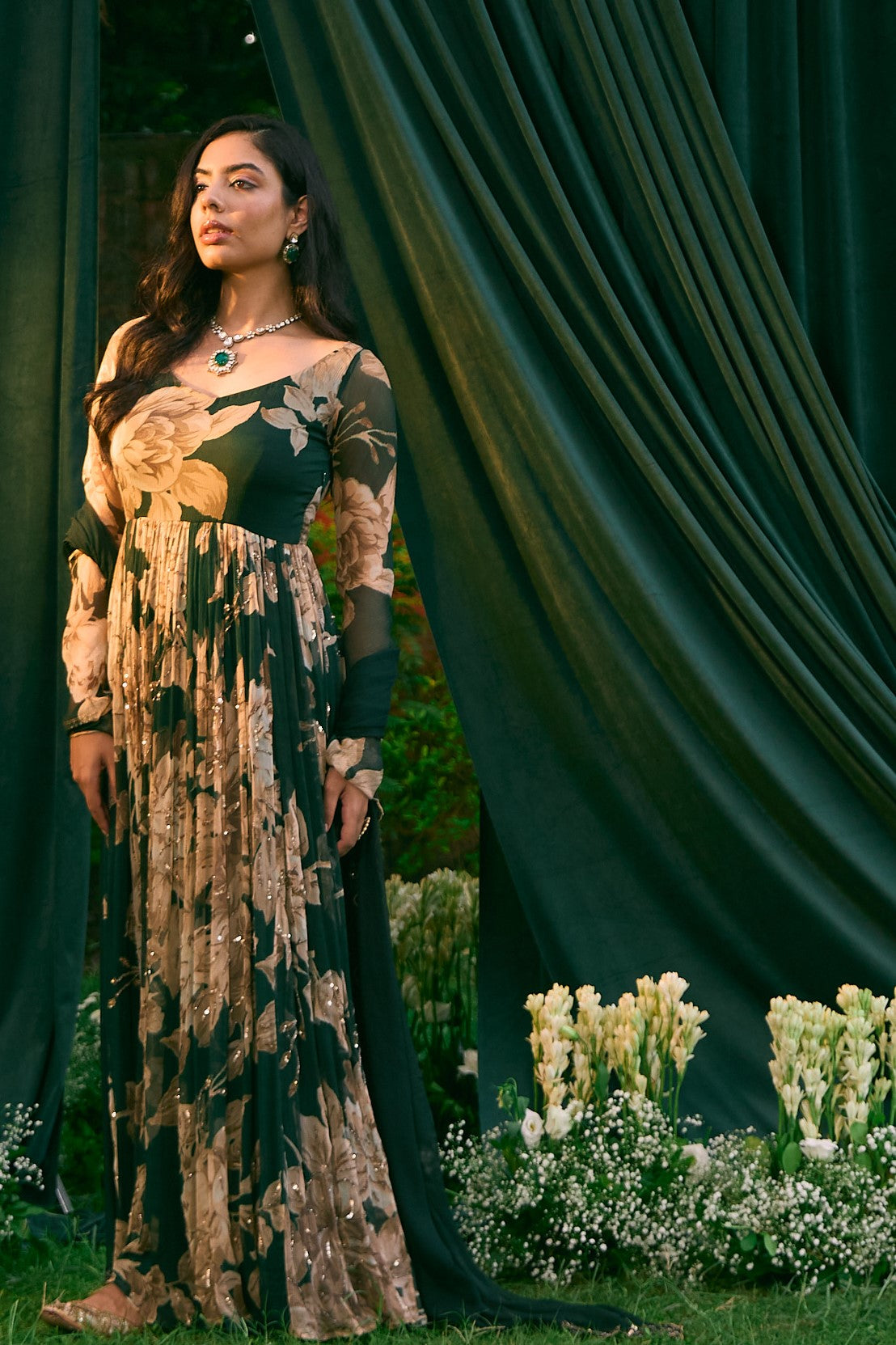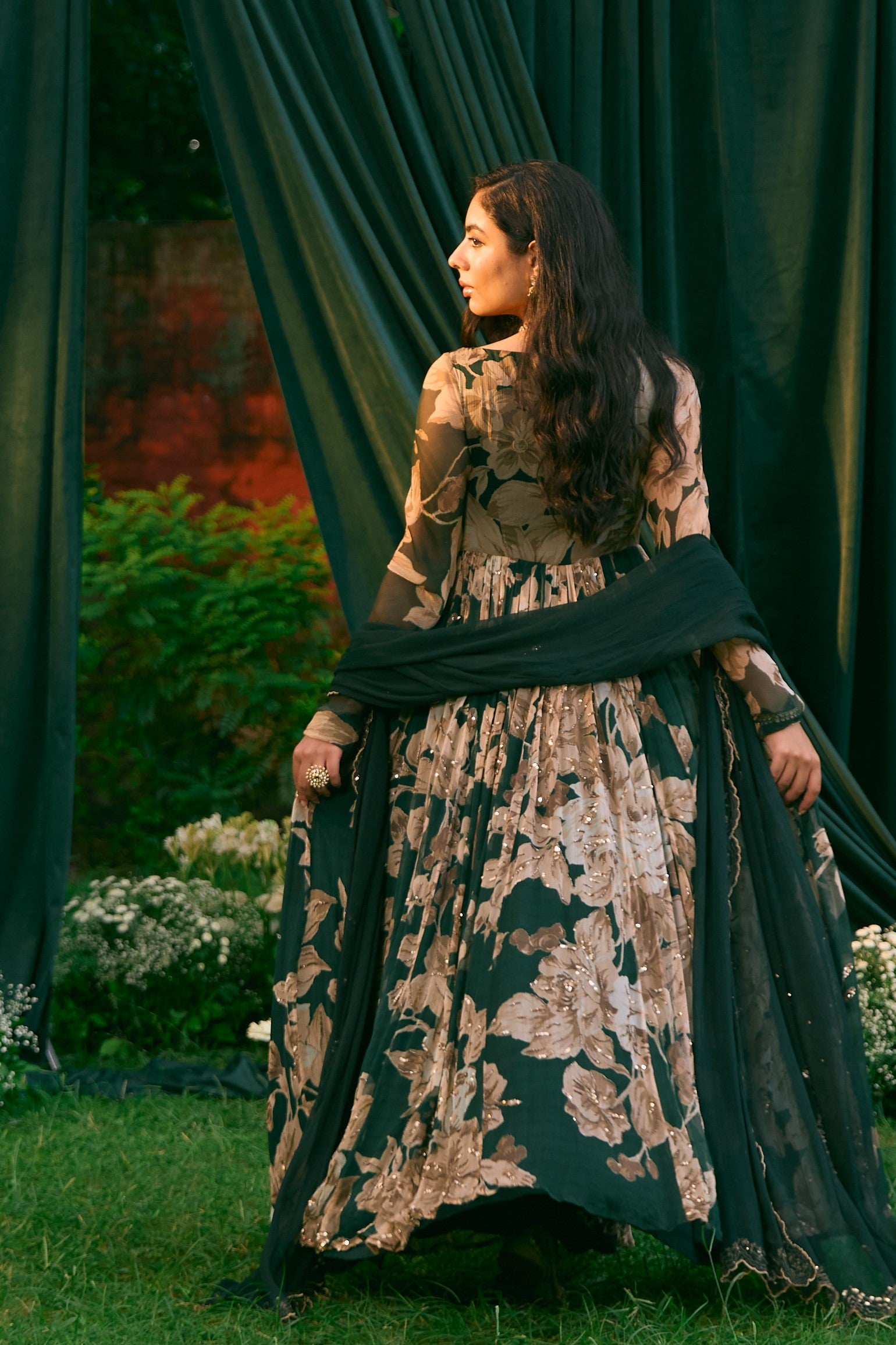 Featuring a Teal Green Chiffon Floral Anarakali in Chiffon.