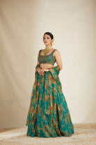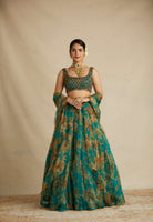 Featuring a Teal Green Floral Lehenga Set in Organza.