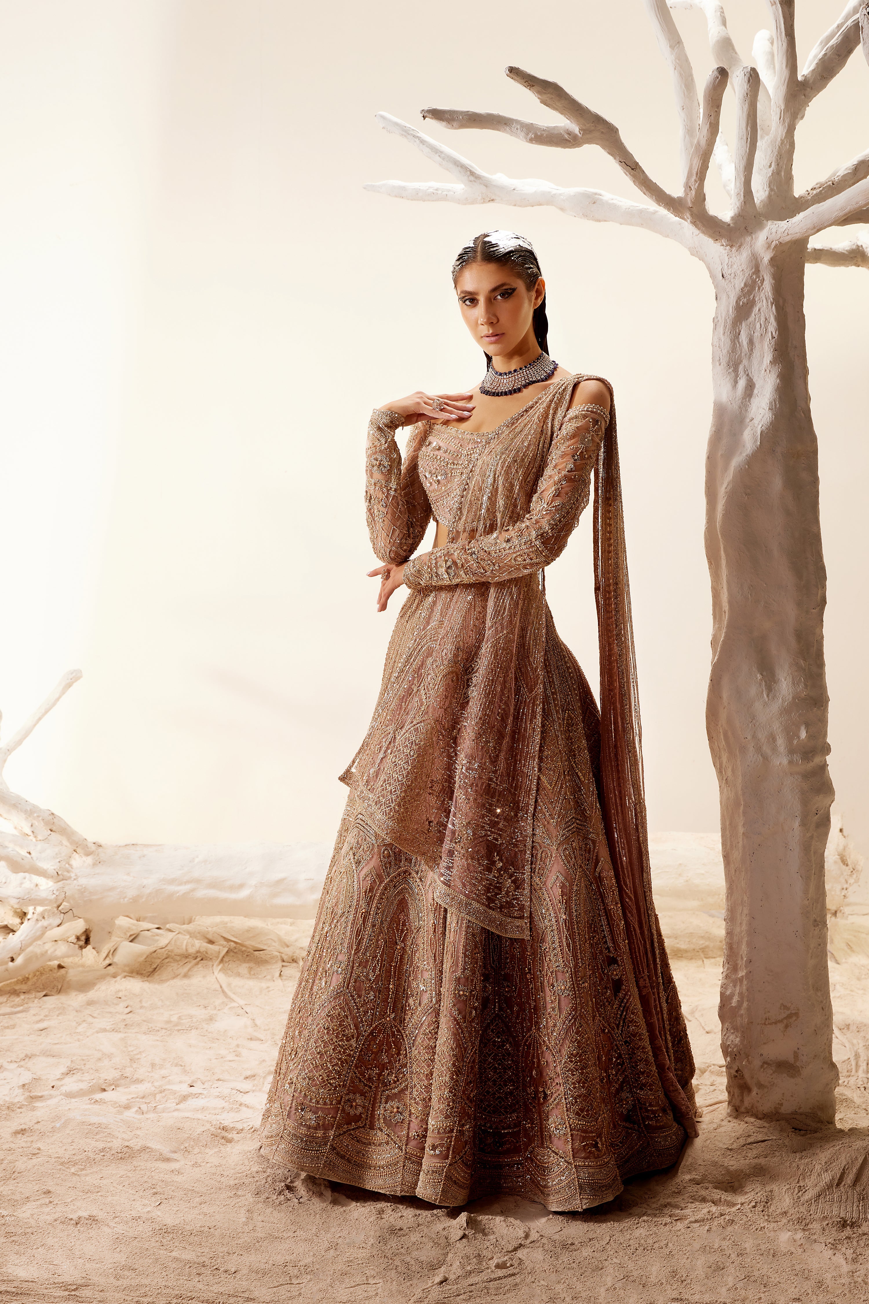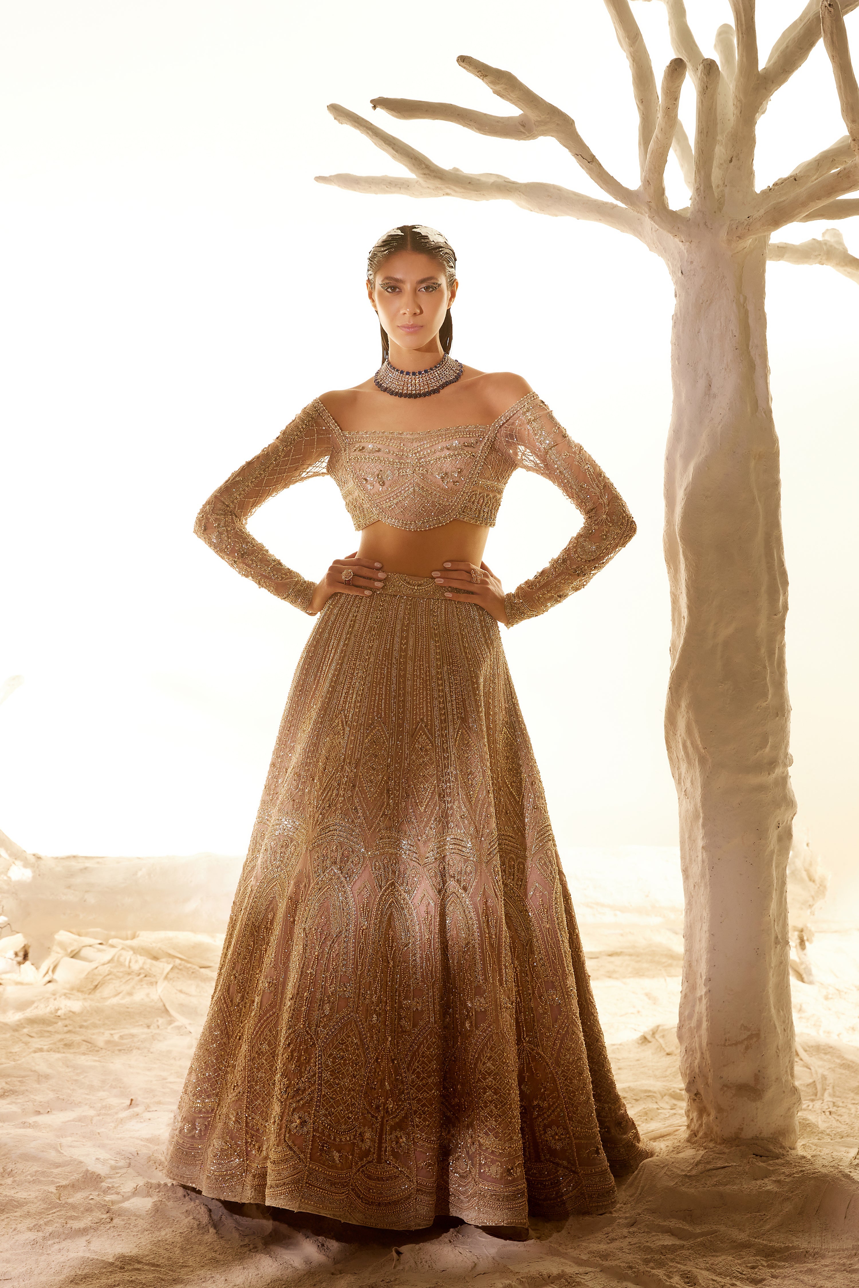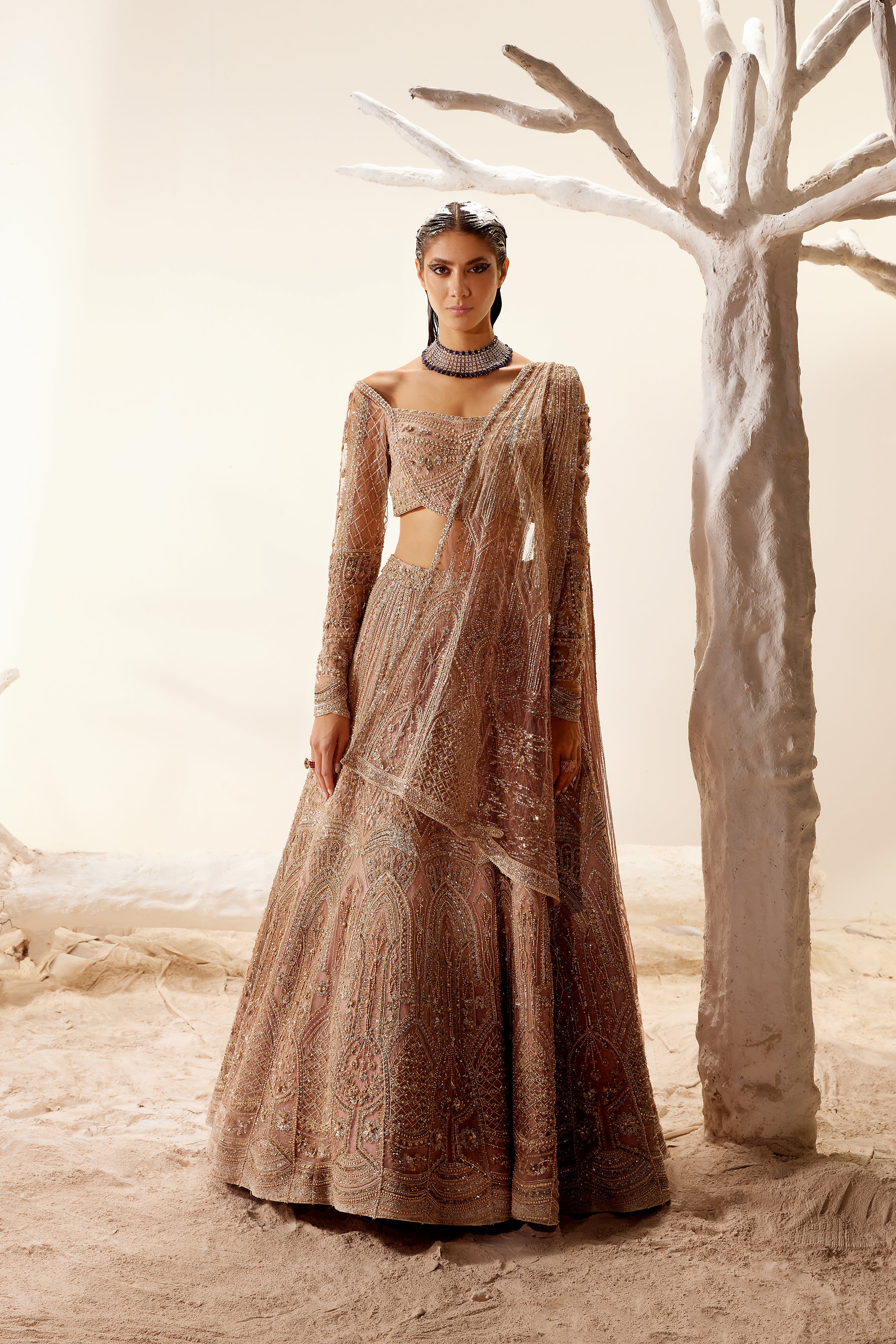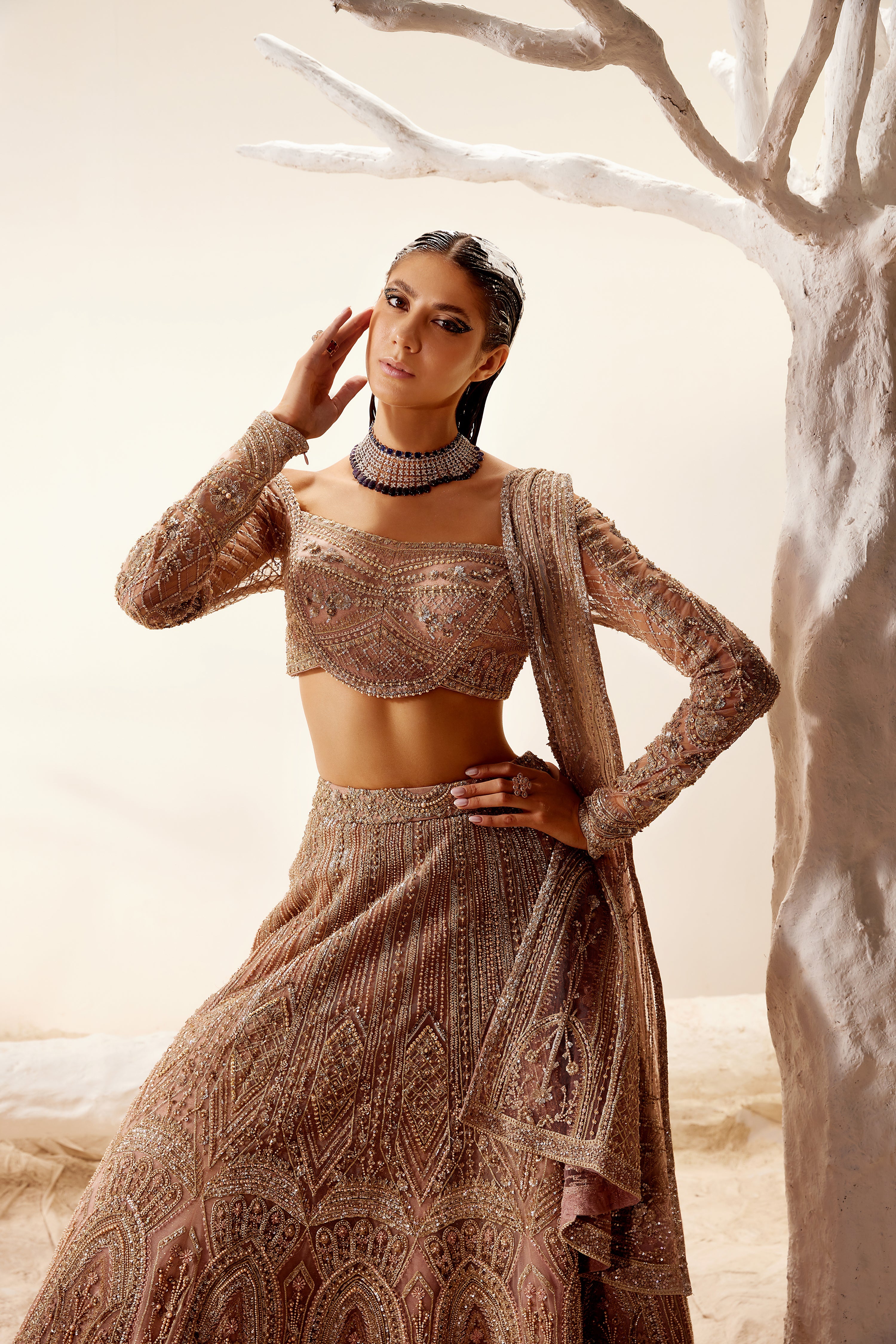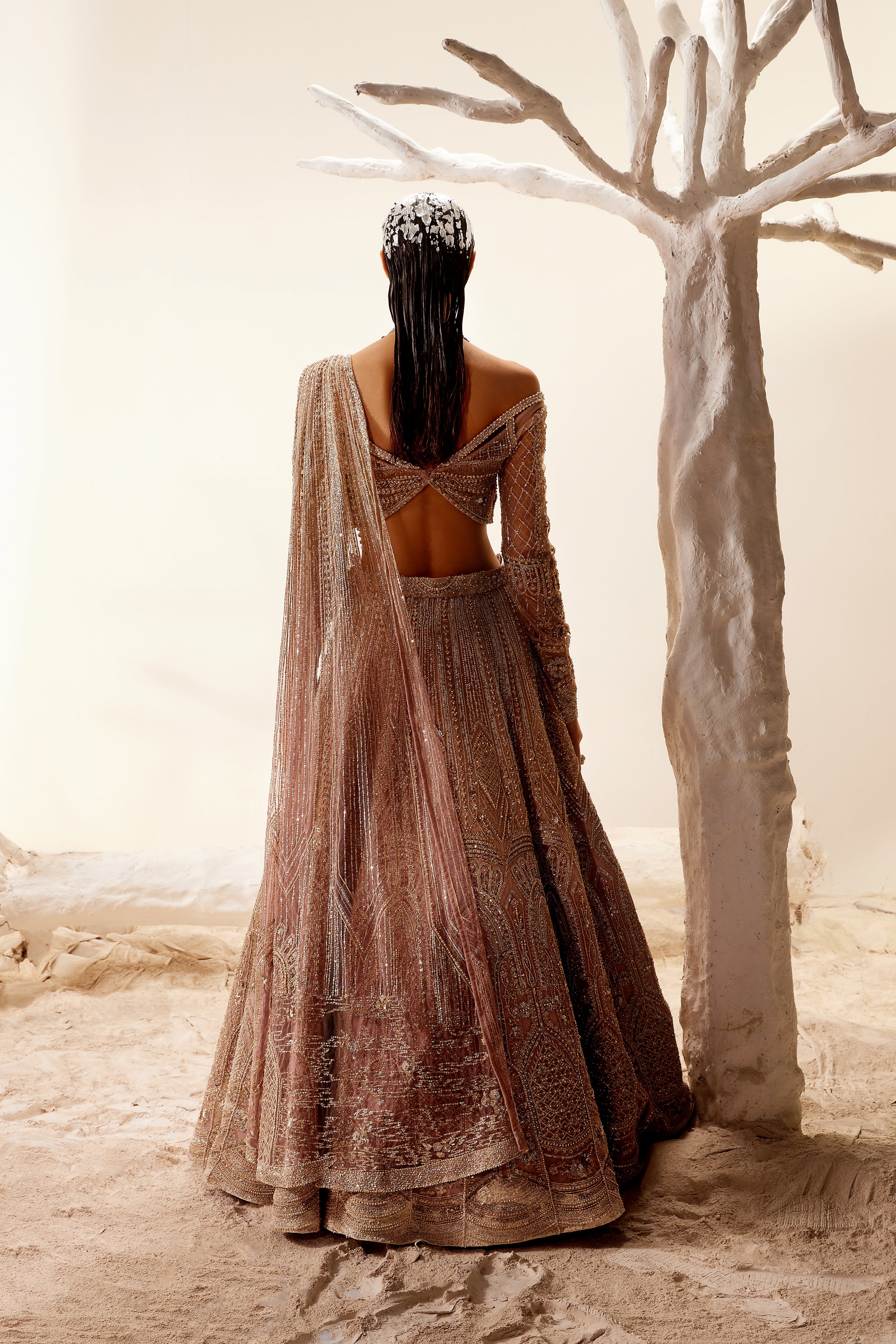The moor art inspired lehenga in a mix of lilc and silver shade.