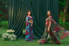 Featuring a Turquise Floral Cape and Flared Pants set in Chiffon.