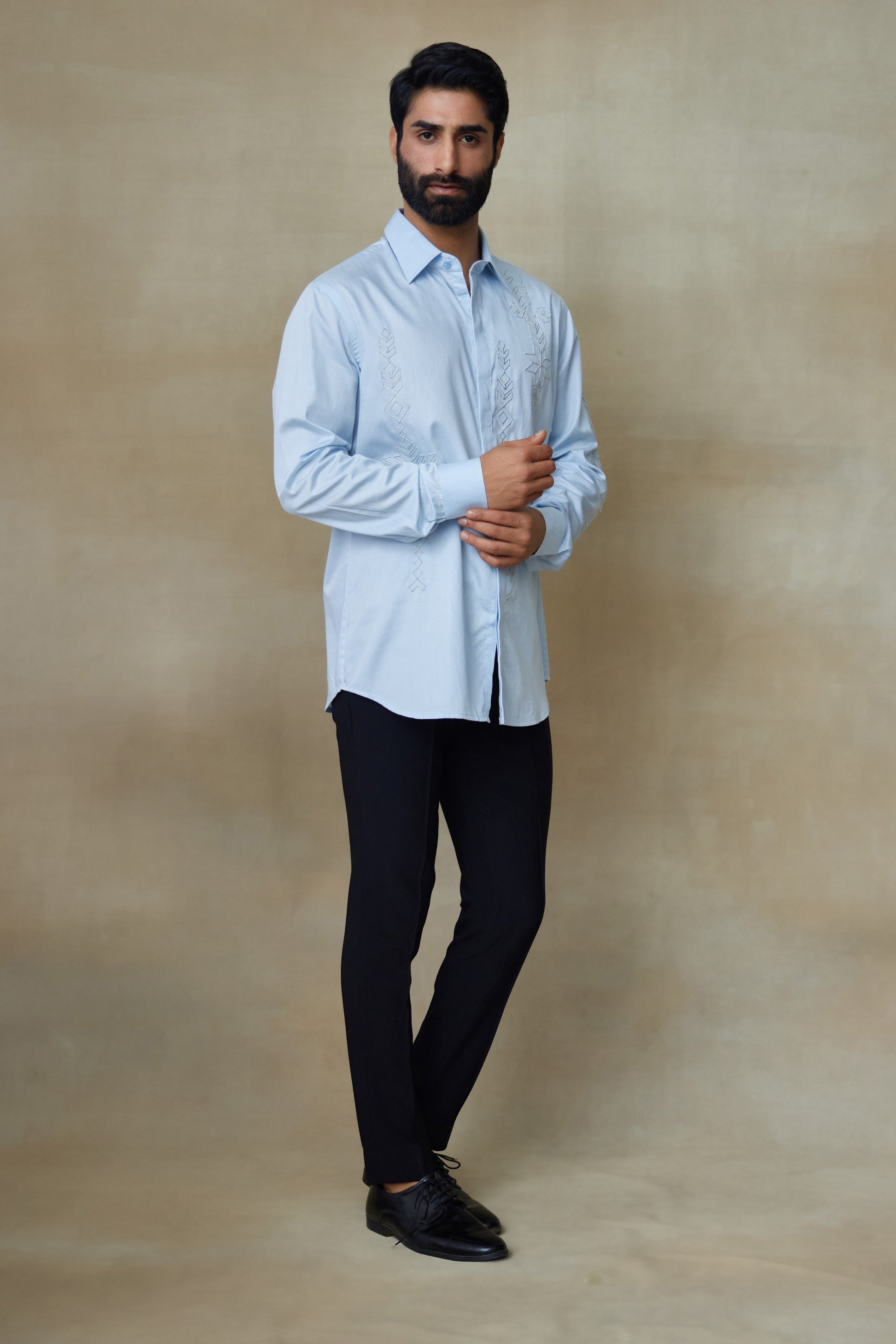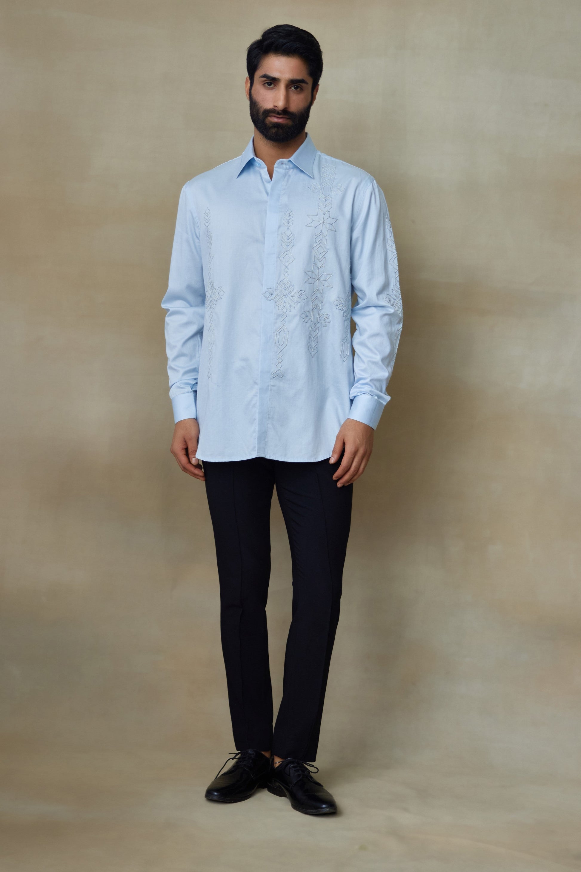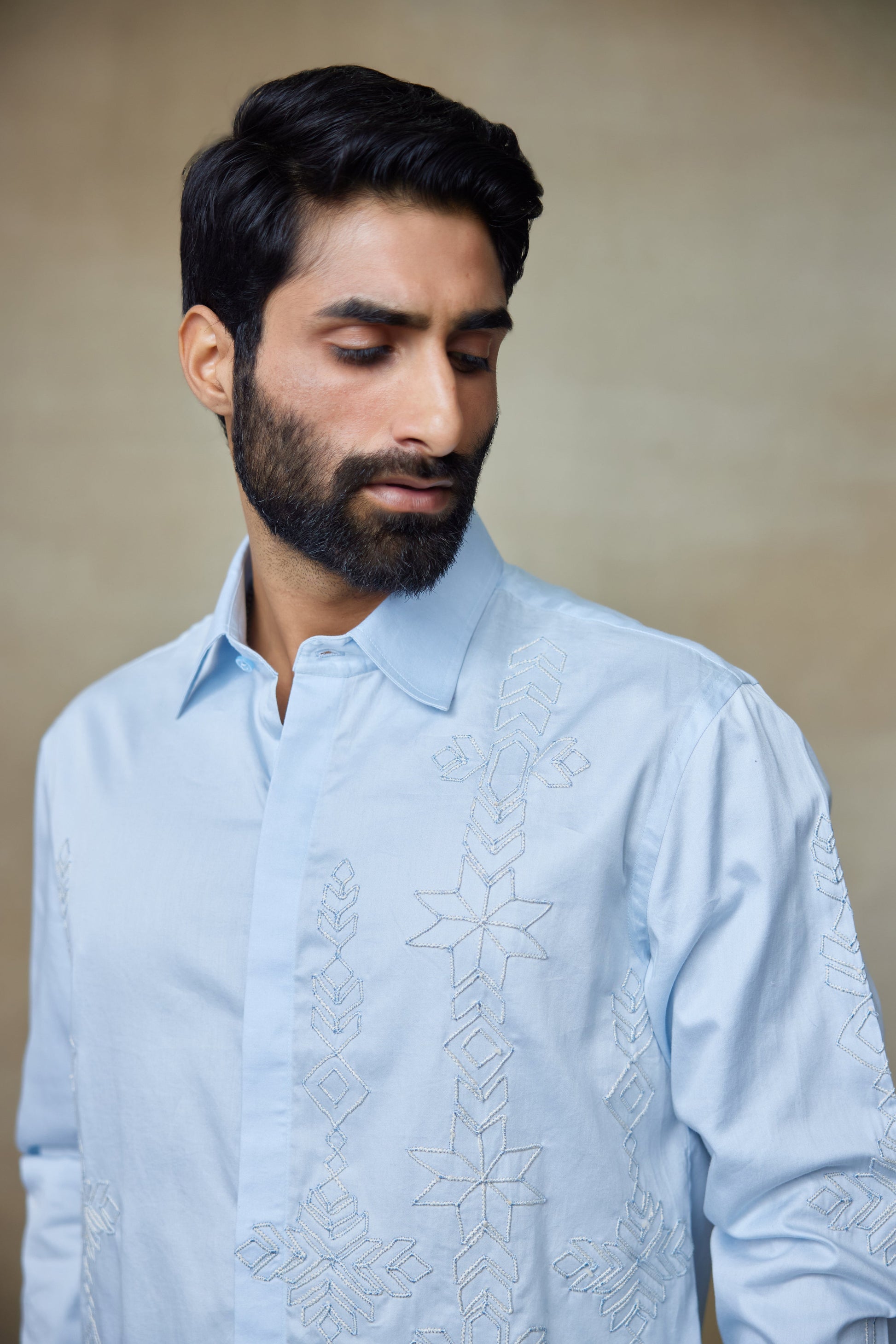 Our Embroidered Cotton Shirt Made With Resham Embroidery Flower Motif With Hand Work Embellishment.